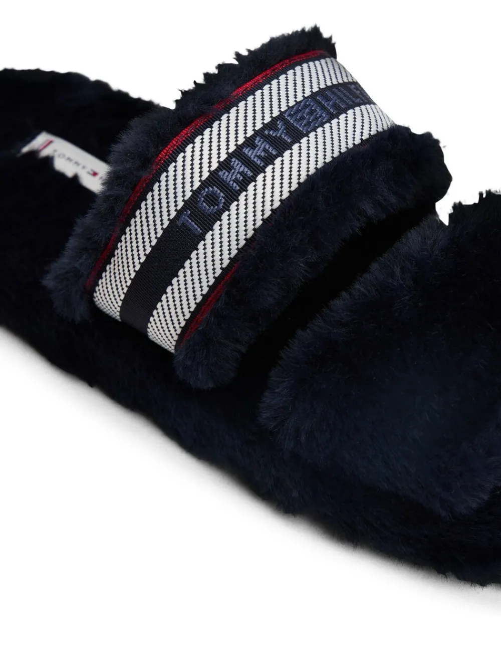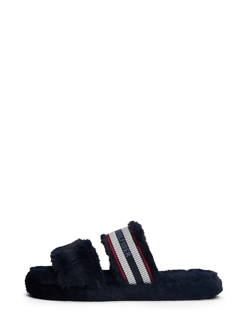 Faux Fur Woven Logo Slippers*Tommy Hilfiger Clearance