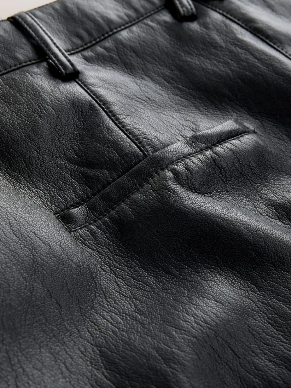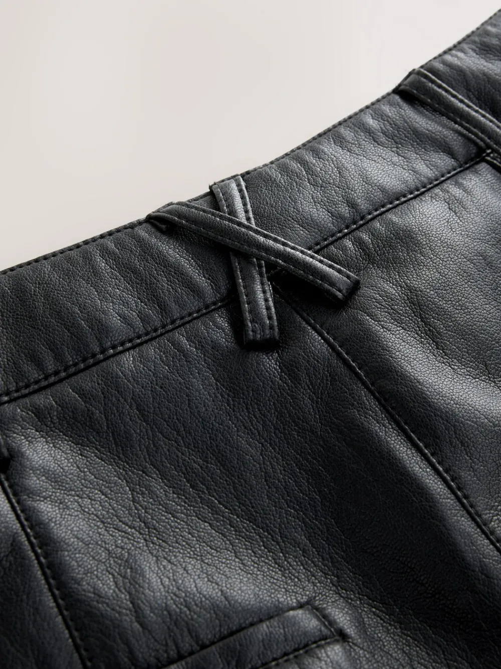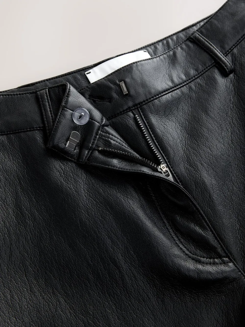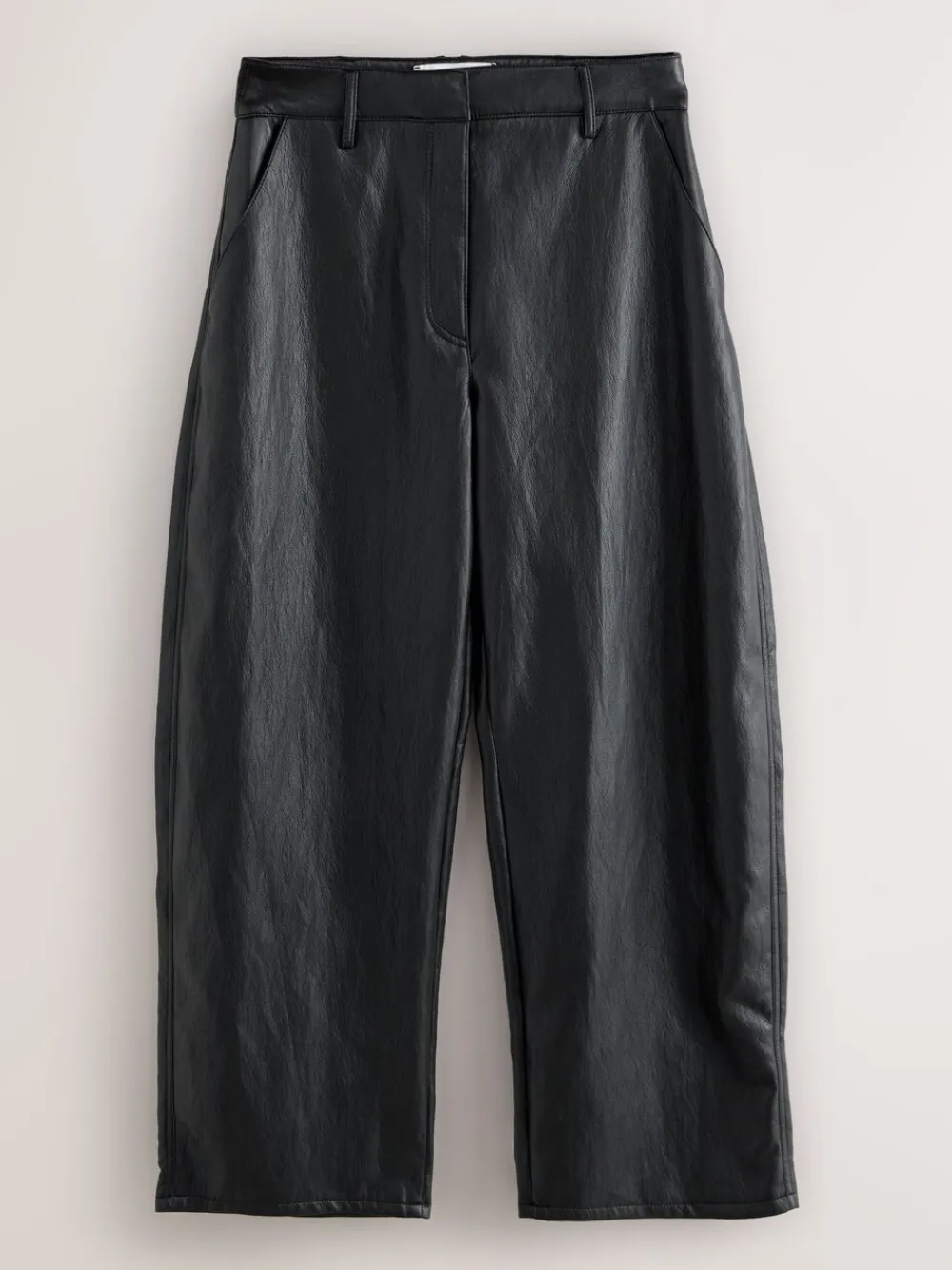 Upgrade your wardrobe with the Nothing Ordinary Faux Leather Barrel Leg Trousers. These trousers redefine a classic, blending the rebellious edge of leather with a sophisticated, modern silhouette.Crafted from soft faux leather, they offer a luxurious feel and a comfortable fit. The unique barrel leg shape tapers elegantly, creating a fashion-forward look that’s both chic and easy to wear. Featuring practical belt loops, a clean hook and eye fastening, and functional front pockets, these trousers are designed to be a versatile and inspiring piece you’ll turn to again and again. Soft faux leather Modern fit Hook and eye fastening Main 100% Polyurethane. Backing 76% Viscose, 14% Polyester, 6% Cotton, 4% Elastane.