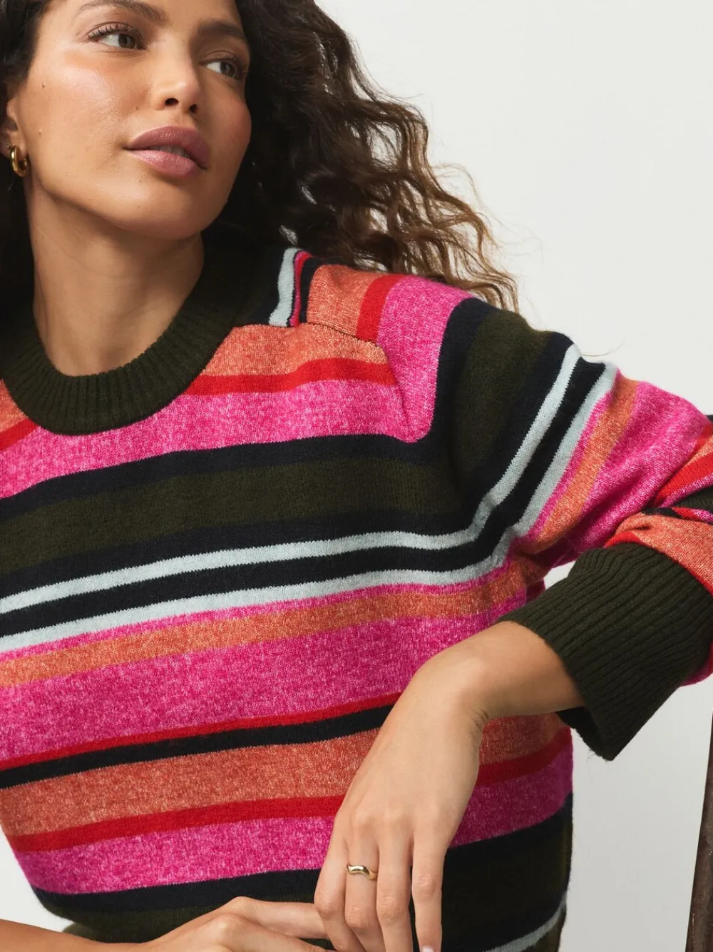 Stay comfortable and chic in this soft Multi-Stripe Jumper. The super-soft knit and bold multi-colour stripe pattern create a vibrant, chic look. With a classic crew neck and long sleeves, it’s a versatile and fashionable piece for any casual outfit. The soft, cosy knit includes Wool in its blend, ensuring natural warmth and comfort perfect for the cooler months. It’s a key layering piece for a comfortable, polished look Knitted design With Wool Crew neck Long sleeves Machinewasbaar. 52% gerecycled polyester, 37% Acryl, 8% wol, 3% elastaan. Onze tall collectie is ontworpen om te passen bij vrouwen van 5’10” en langer. Dit is verhoudingsgewijs vergroot door het lichaam, de benen en de mouwen om de perfecte pasvorm te bereiken. Verkrijgbaar in maat 8-20.