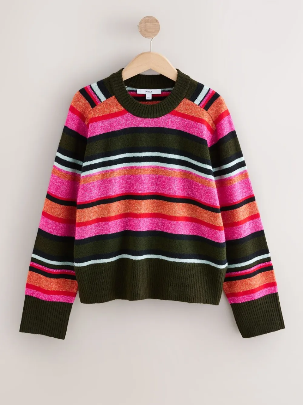Wees de eerste om “Felroze/kaki met meerkleurige strepen – Gebreide trui met ronde hals van wol*Next Online” te beoordelen Reactie annuleren