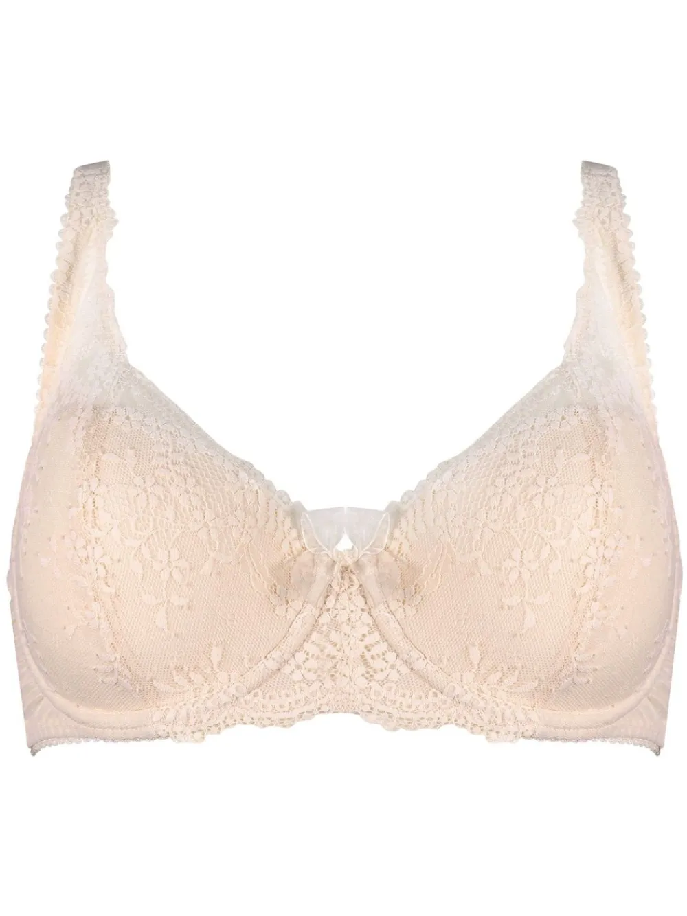 Deze niet-voorgevormde bh van delicate kant voegt iets speciaals toe aan uw dagelijkse Lingerie look. De mooie, elastische picotkant zorgt ervoor dat de bh perfect wordt omlijst en de transparante strik aan de voorkant maakt de look helemaal af. Met verstelbare bandjes en haak-en-oogsluiting, zodat u zich de hele dag comfortabel en ondersteund voelt. Verkrijgbaar in de maten D-J. Met beugels, niet-gevoerd, delicate kant op de cups, volledig verstelbare bandjes, haak-en-oogsluiting Alleen met de hand wassen. 80% Nylon, 20% elasthaan.