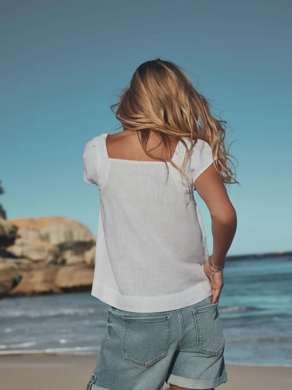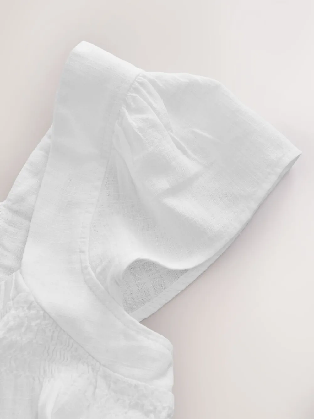 Discover a versatile wardrobe essential with this beautiful top, designed to elevate any look, perfect for everyday wear. Crafted from a soft, breathable linen blend fabric, it features a flattering square neckline and delicate smocking across the bust for a comfortable, shaped fit. The full front button placket and charming flutter cap sleeves add a touch of intricate detail and feminine grace. short sleeve button fastening linen blend everyday square neckline smocking across the bust flutter cap sleeves Machinewasbaar. 70% TENCEL™ lyocell, 30% linnen. Artikelen met het curve-logo zijn verkrijgbaar in de maten 18 en groter.