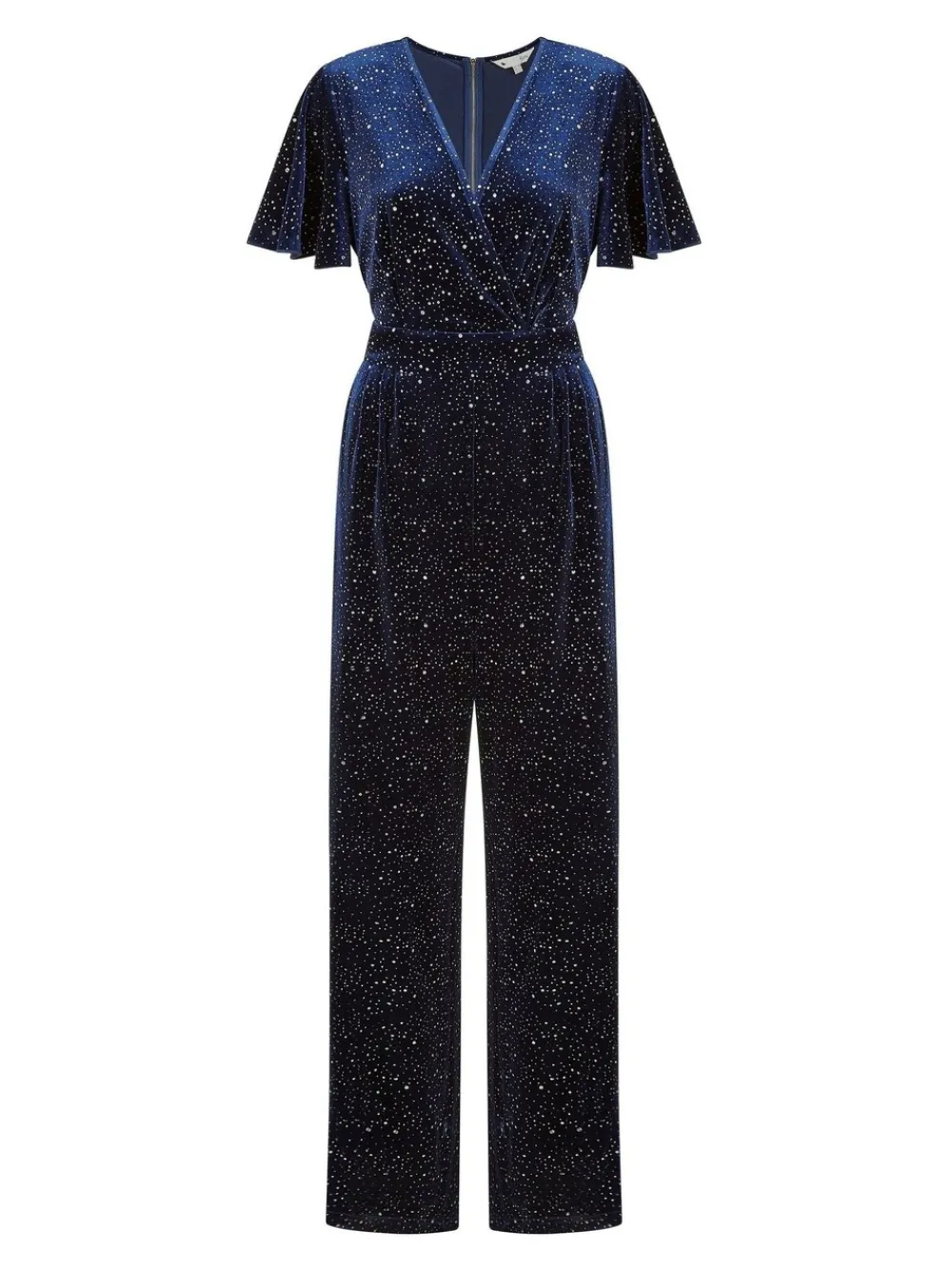 Tijd om te stralen dit feestseizoen! Deze jumpsuit met wijde pijpen van Yumi is de perfecte partner voor al uw feestelijke uitnodigingen. Hul jezelf in onwaarschijnlijk zacht, glinsterend fluweel voor een extra stoere uitstraling. Met wikkelhals, gestrikte taille en engelmouwen. Standaard binnenbeenlengte 59″ / 149,5 cm. Alleen met de hand wassen. 95% polyester, 5% elastaan.