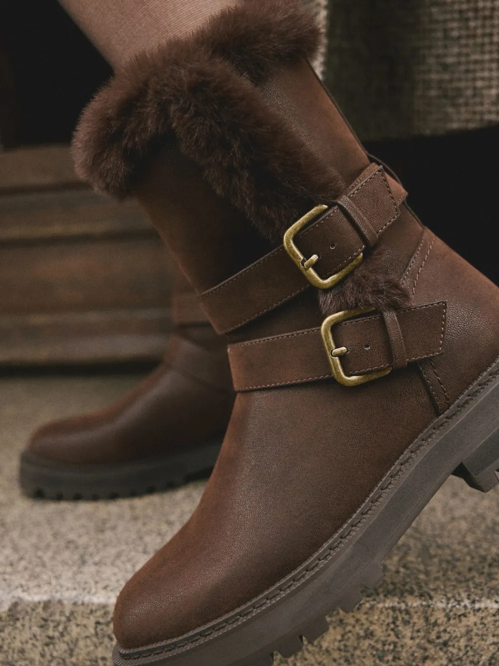 – Forever Comfort® enkellaarzen met dubbele gesp en voering van imitatiebont*Next Online
