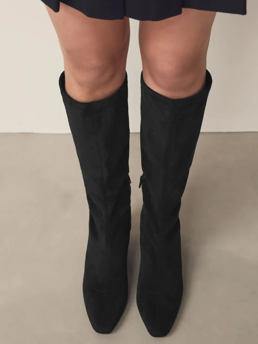 Ga stijlvol en comfortabel op pad met deze essentiële, Zwart kniehoge Sokken Boots. Ze zijn Craft met een strak bovenwerk van Imitatiesuède, ze hebben een Trendy beitelneus en een opvallende blokhak. Dankzij de Forever Comfort®-vulling zijn ze de hele dag draagbaar, waardoor ze perfect zijn voor veelzijdige dag- en nightmode. Beitelneus Bovenwerk van Imitatiesuède Blokhak Binnenrits voor gemakkelijke toegang Forever Comfort®-vulling Hakhoogte 5 cm. Bovenwerk – textiel; voering en voetbed – textiel, overige materialen; zool – Andere materialen.