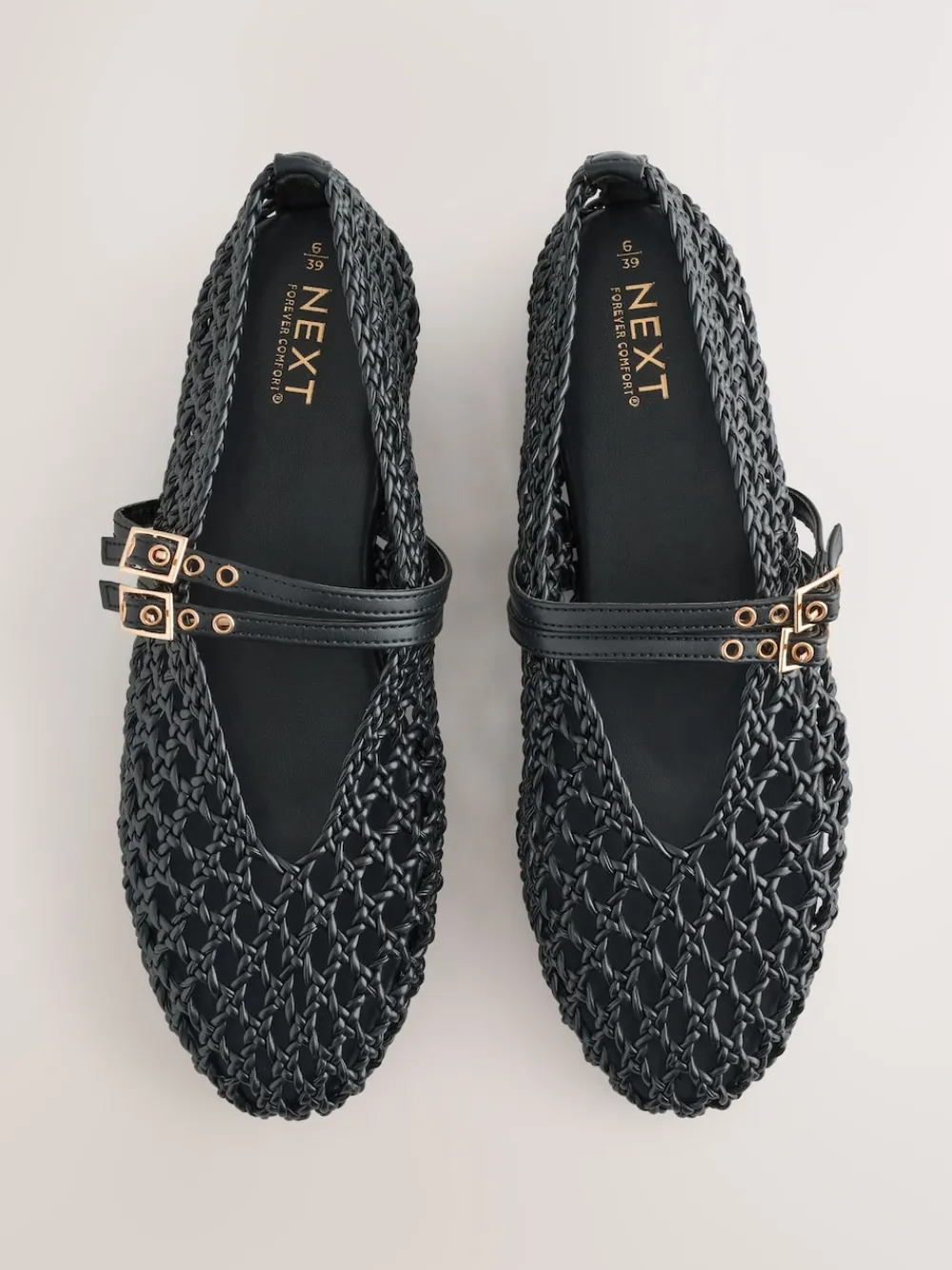 Show your style in these unique black weave Mary Jane shoes. The intricate woven upper and double strap design add a touch of playful charm, while the gold-toned buckles provide an elegant finish. With Forever Comfort® padding and an adjustable strap, these shoes are the perfect blend of style and all-day wearabilityWeave upper Double strap Forever Comfort® padding Adjustable strap Gold-toned buckles Bovenwerk – Andere materialen, voering en sok – overige materialen, zool – Andere materialen.
