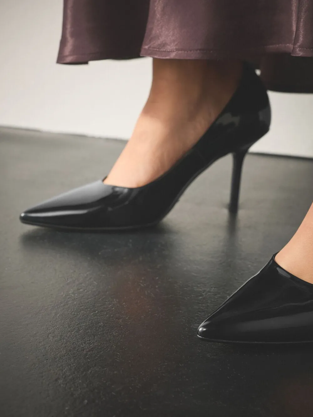 Step into timeless elegance with these Black Patent Forever Comfort® Pointed Mid Court Shoes. The glossy patent upper and chic pointed toe make these shoes perfect for work or any occasion. Designed for all-day wear, the slip-on style is enhanced with Forever Comfort® padding for superior cushioning. Patent upper Pointed toe Forever Comfort® padding Slip-on court style Stiletto heel Hakhoogte 8,5 cm. Bovenwerk – Andere materialen, voering en sok – overige materialen, zool – Andere materialen.