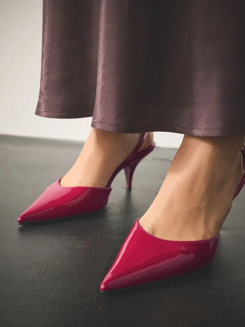 Exude sophistication with these sharp pointed toe slingback pink heels. Crafted with a sleek patent upper, the elegant curvy design and slender kitten heel offer timeless glamour. Featuring Forever Comfort® padding and an adjustable strap, these are your essential desk-to-dinner shoes for chic confidence. Glossy patent upper Elegant pointed toe Secure adjustable slingback Forever Comfort® cushioning Curvy heel design Hakhoogte 8 cm. Bovenwerk – Andere materialen, voering en sok – overige materialen, zool – Andere materialen.