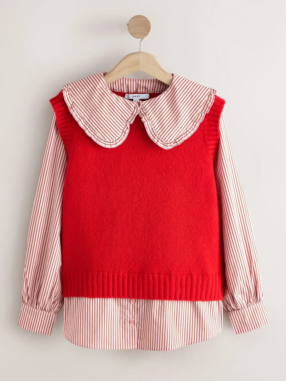 – Frill Collar Shirt Layer Knitted Tank*Next Online