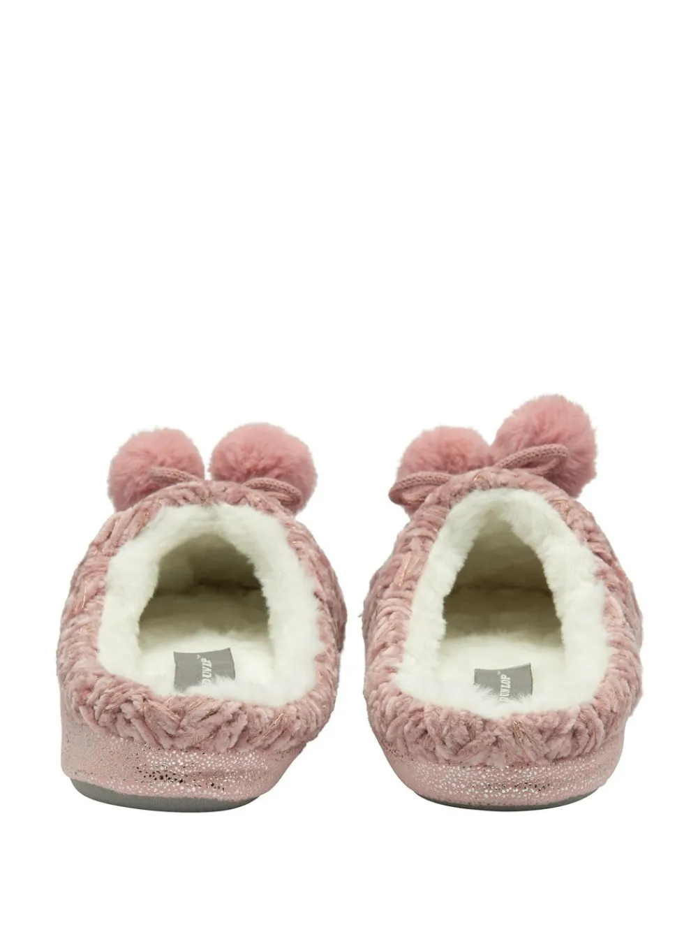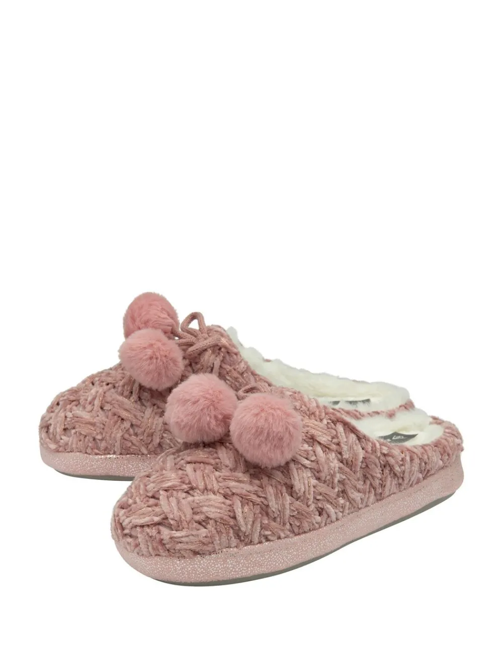 Supercomfortabele dames pantoffel met gesloten teen, gebreide bovenkant, zachte bontkraag en traagschuimsok Hoofdbestanddeel – 100% textiel. Voering – 100% textiel. Zool – 100% andere vezels.