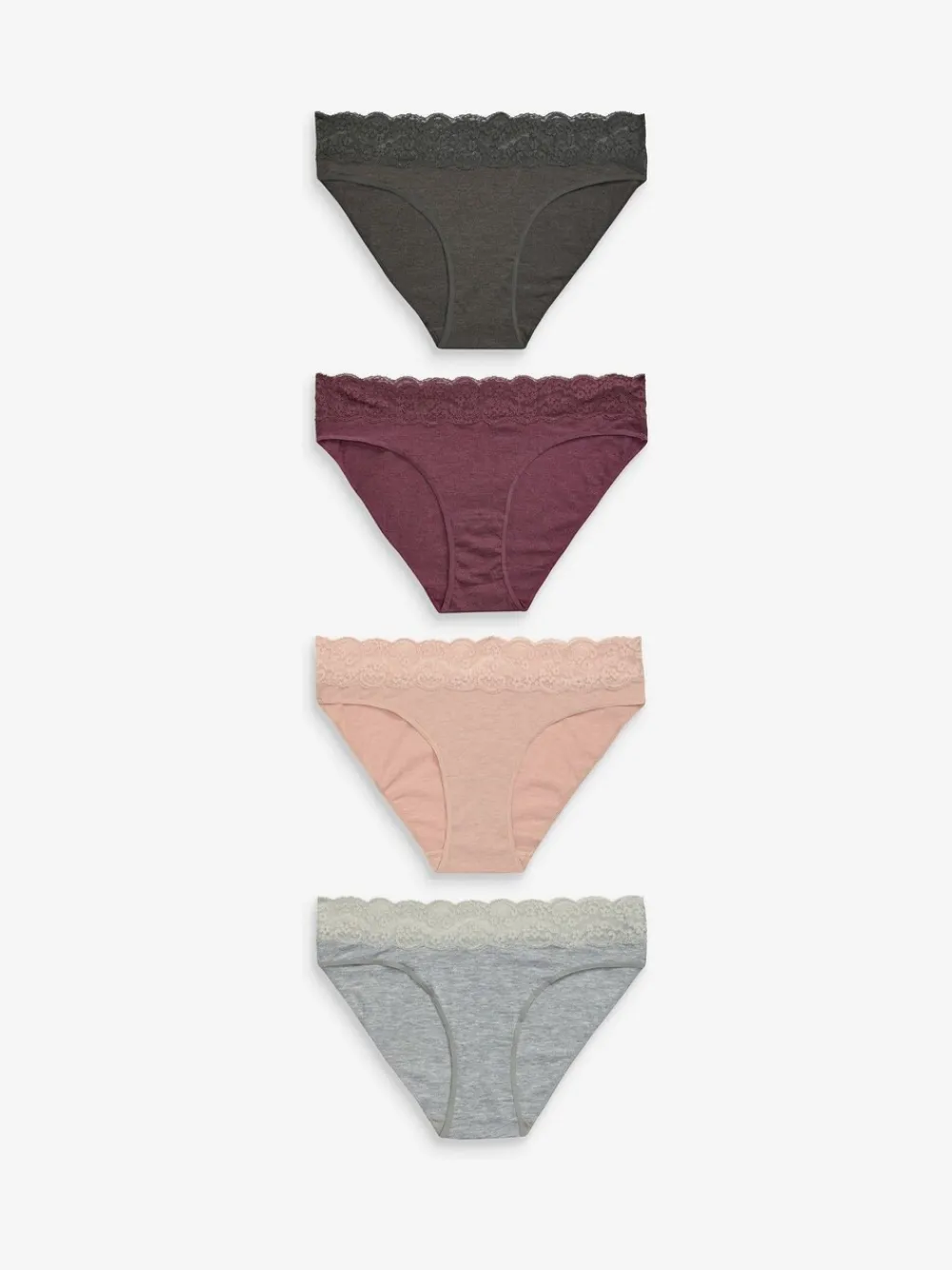 Gemêleerd grijs/roze/roodpaars – Katoenen kanten slipjes 4 stuks*Next Clearance