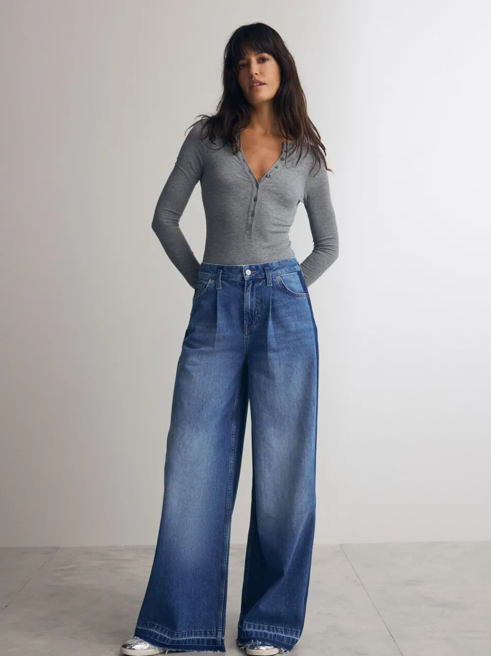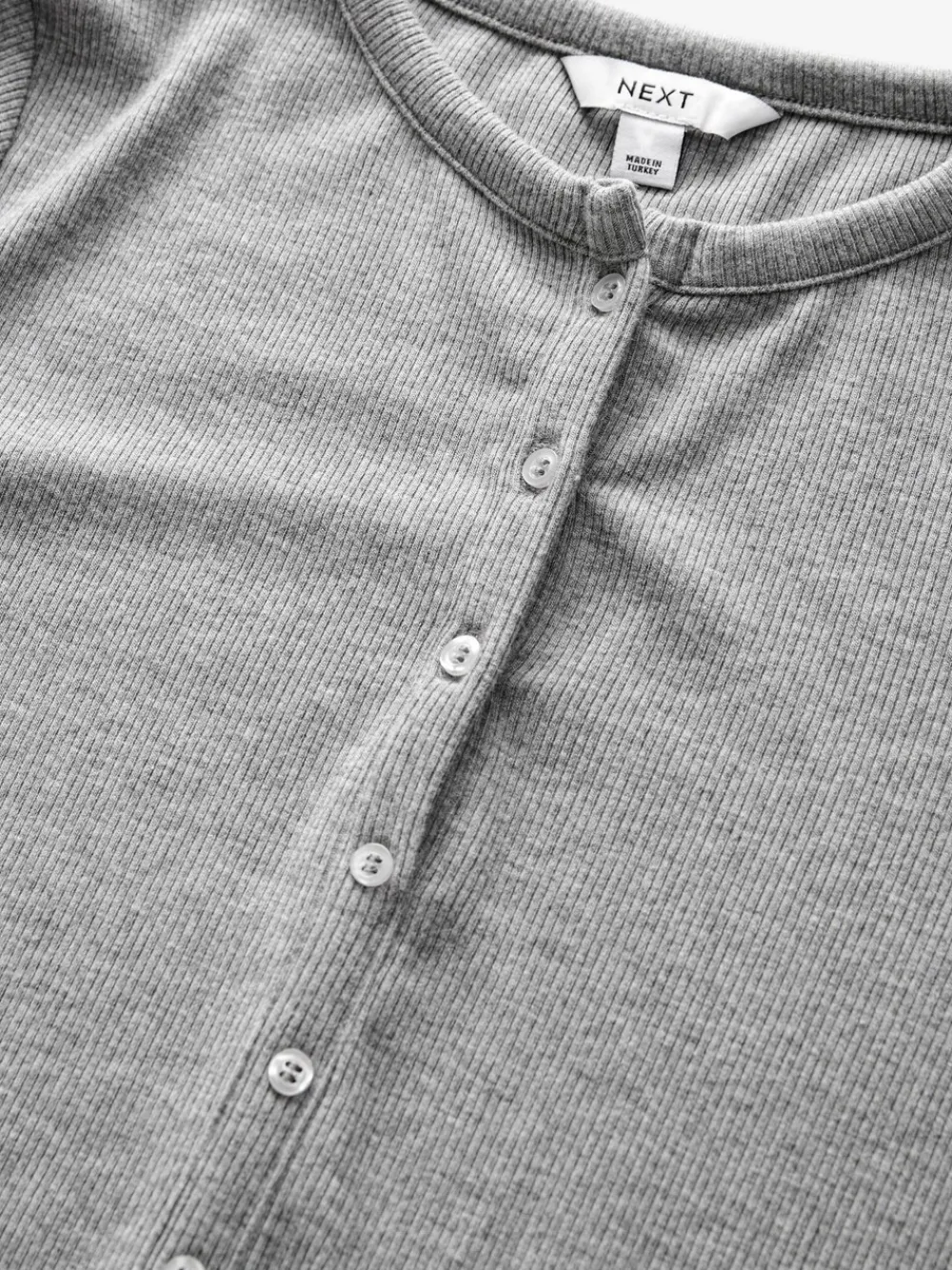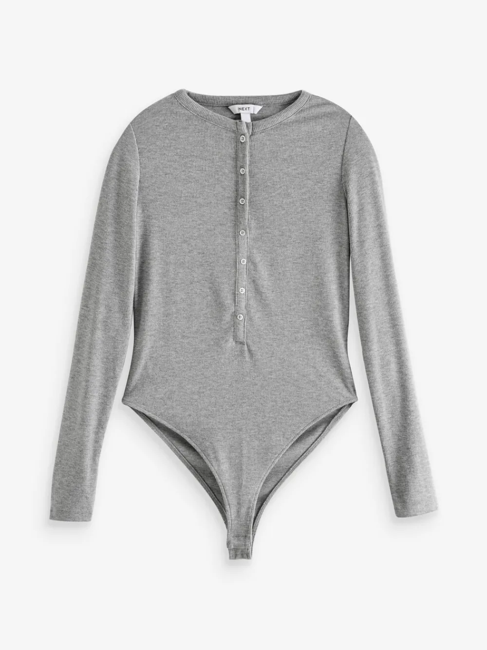 This long sleeve grey bodysuit is made from a soft ribbed jersey fabric with a Henley-style button fastening and a popper fastening to the crotch, perfectly paired with your favourite wide leg trousers or jeans. Regular fit Long sleeve Soft ribbed fabric Henley style neck Popper fastening Machinewasbaar. 63% gerecycled polyester, 33% Livaeco™ viscose, 4% elastaan. Artikelen met het curve-logo zijn verkrijgbaar in de maten 18 en groter.