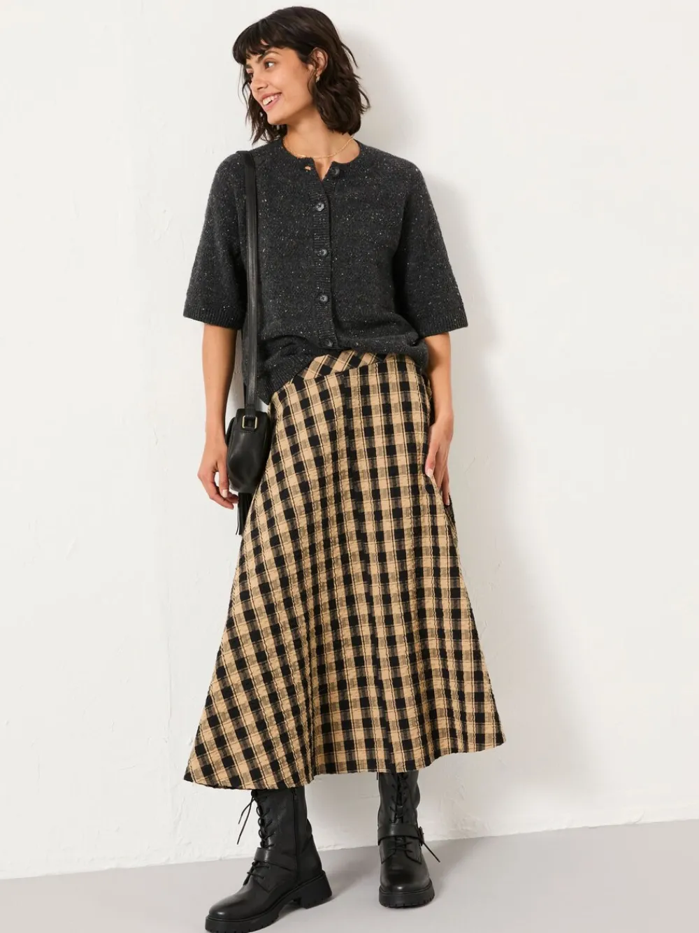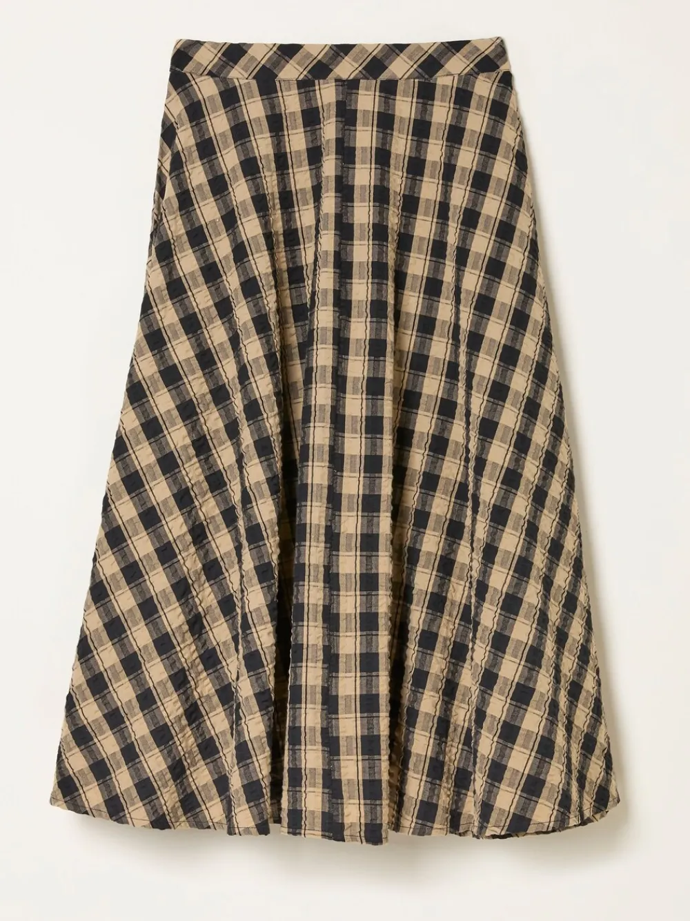 Val op met stijl met onze Tilda midi-rok. Deze rok is gemaakt van zacht 100% katoen en is comfortabel en ademend. Ideaal voor zowel een formele als een informele outfit. Dankzij het ruitjesmotief, de Flatterende vorm en lengte en de zachte feel is dit het perfecte tussenstuk voor uw garderobe. Draag deze rok op kantoor met panty’s en een blouse of ’s avonds met hakken naar een borrel. Hij is makkelijk te stylen en staat je goed. Het model is 5’9”/175cm en draagt UK maat 8 Standaard van tailleband tot zoom 32,5″ / 82 cm. Machinewasbaar. 100% katoen.