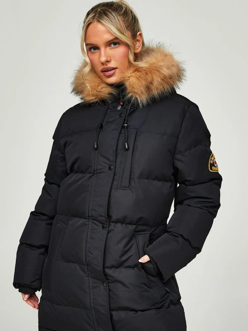 Zavetti Canada Dames Goshawa Puffer Parka Jack in zwart. Het is geen fijne tijd om in de winter te zijn. Zavetti Canada is je volledig te slim af en is op het juiste moment op de juiste plaats om je te voorzien van dit fantastische, gevoerde verkoudheidswerende middel. Met een ritssluiting aan de voorkant, een herhalend logo aan de binnenkant, een flap met drukknopen en drie veilige zakken met ritssluiting aan de voorkant om al uw kleine spullen veilig in op te bergen. De capuchon is verstelbaar en heeft een trekkoord. De capuchon is voorzien van een afneembare, zachte imitatiebontrand die u eenvoudig opnieuw kunt opzetten als het weer of uw mood daarom vraagt. Ritssluitingen met esdoornbladmotief en Zavetti Canada-merkpatch op de linkermouw. Taxi voor de winter. Machinewasbaar. 100% polyester.