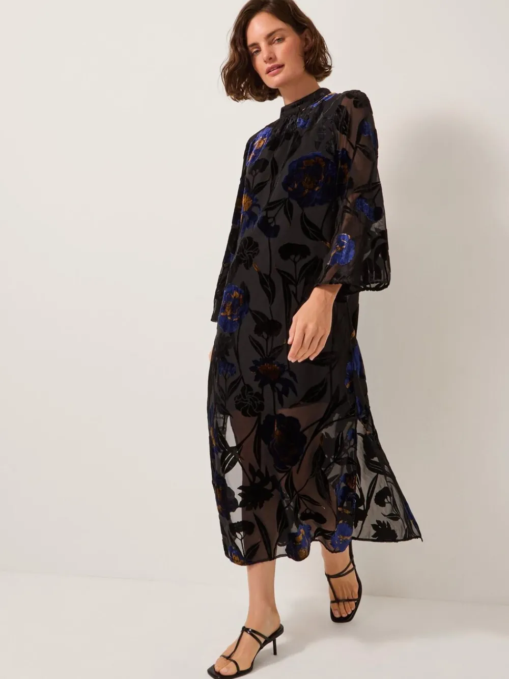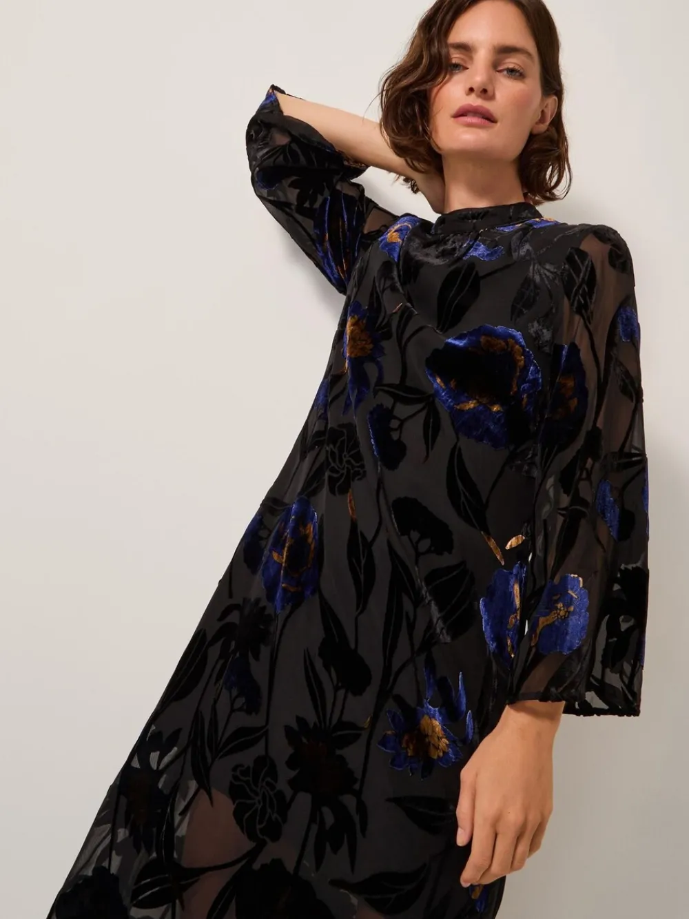 After dark glamour. Date night or dinner party, this dress is sure to turn heads. Showcasing luxuriously soft velvet florals winding from the long sleeves to the calf-skimming hem, it s designed with a mini slip underneath and side slits to finish. Machinewasbaar. Hoofdbestanddeel 100% nylon. Voering 100% polyester.