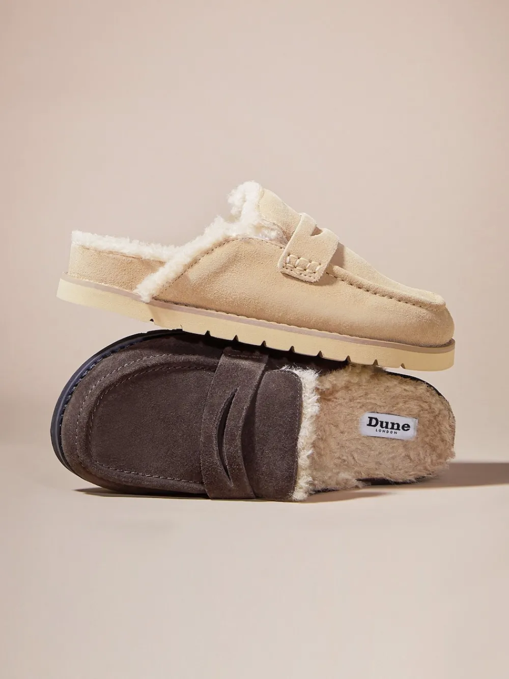Deze hybride instappers van suède zonder achterkant combineert luxueuze stoffen met een relaxte flair en is gevoerd met imitatiebont. Het voetbed is zo ontworpen dat het de vorm van de voet volgt. Gebaseerd op het profiel van een traditionele penny instapper, biedt Goldy ultiem comfort en stijl de hele dag door. Bovenwerk – leer. Voering en binnenkant – Leer, zool – Andere materialen.