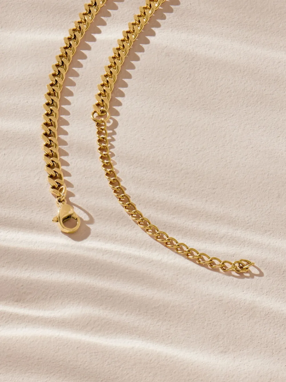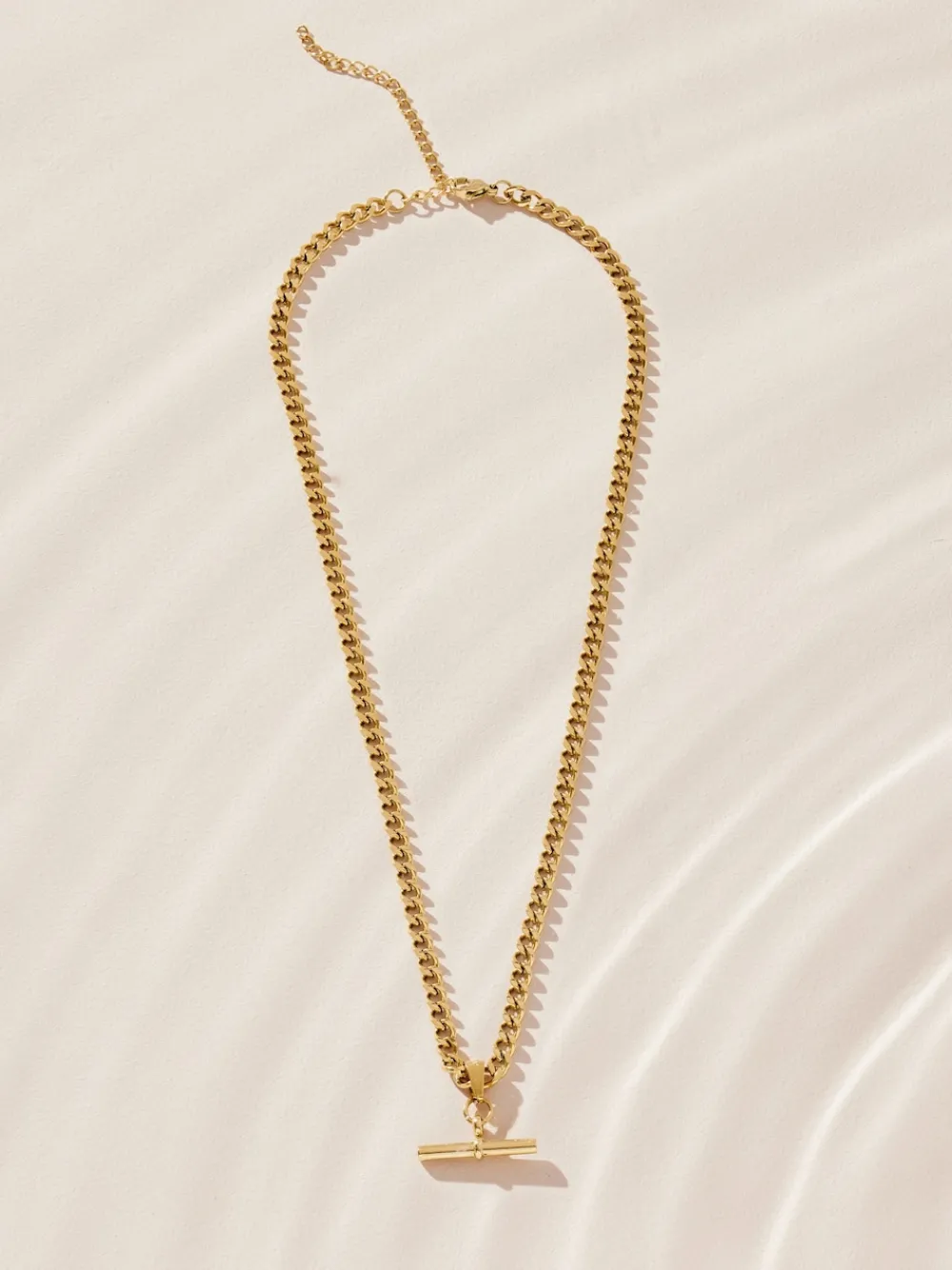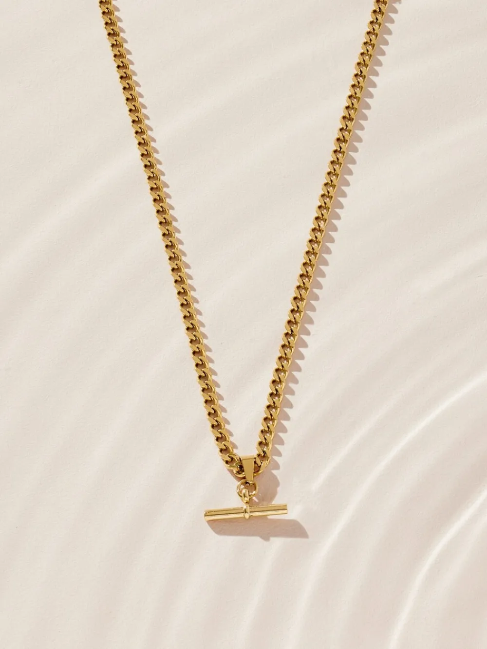 Gemaakt van 100% roestvrij staal met een PVD-coating (physical vapour deposition). Deze Goudkleurige T-bar-ketting is ideaal voor dagelijks gebruik en ziet er geweldig uit gecombineerd met andere pieces. De ketting is waterbestendig en bestand tegen slijtage door zweet, parfum, corrosie en aanslag. Wordt geleverd met beschermhoesje. T-bar ontwerp RVS PVD-coating 100% Gerecycled staal.