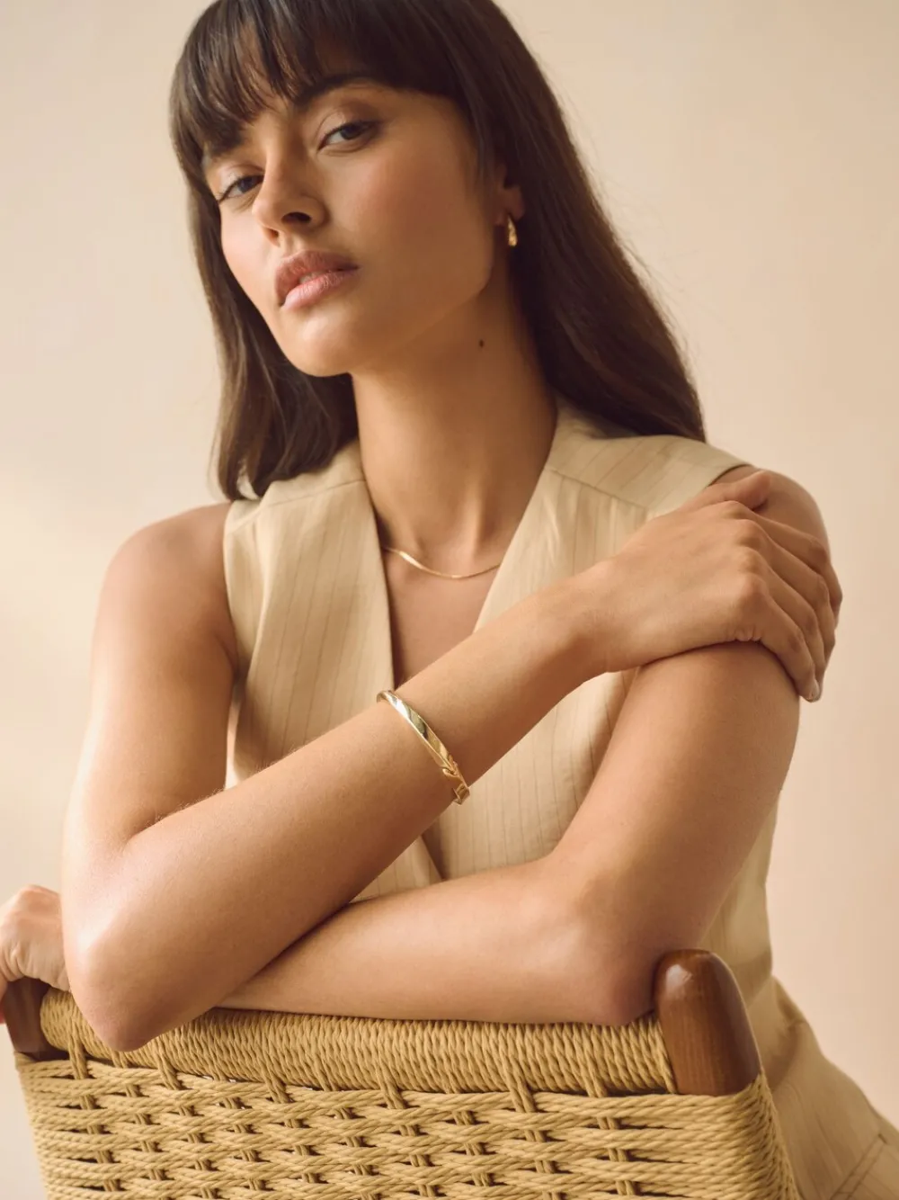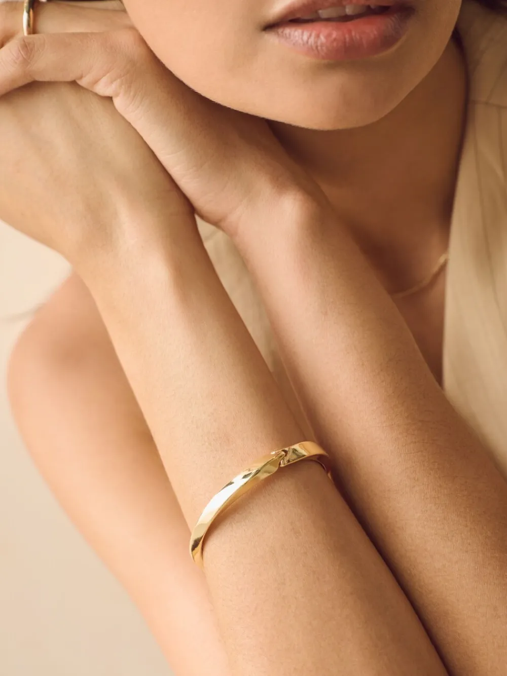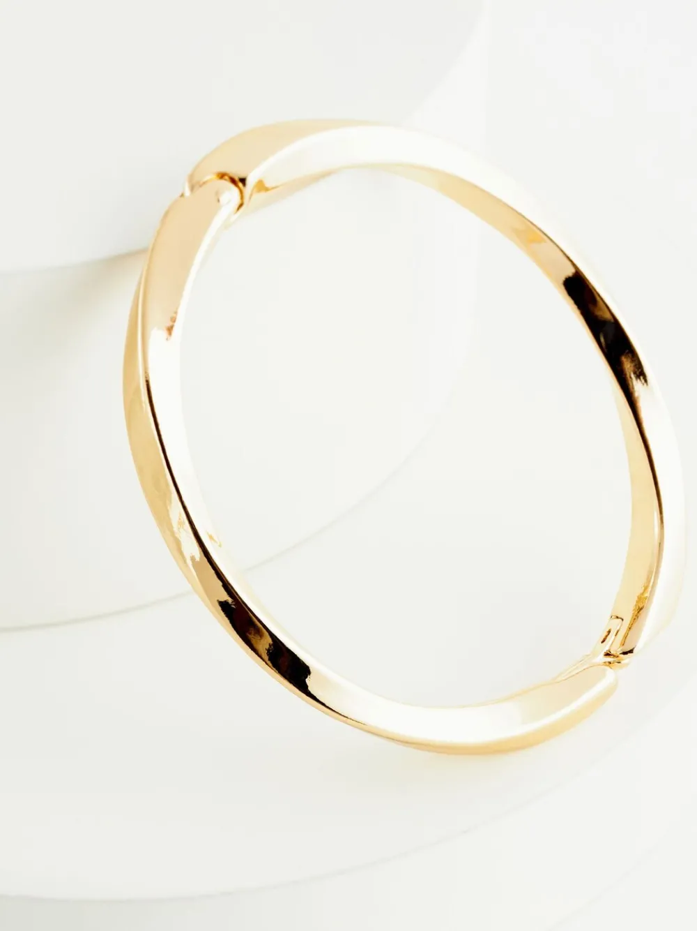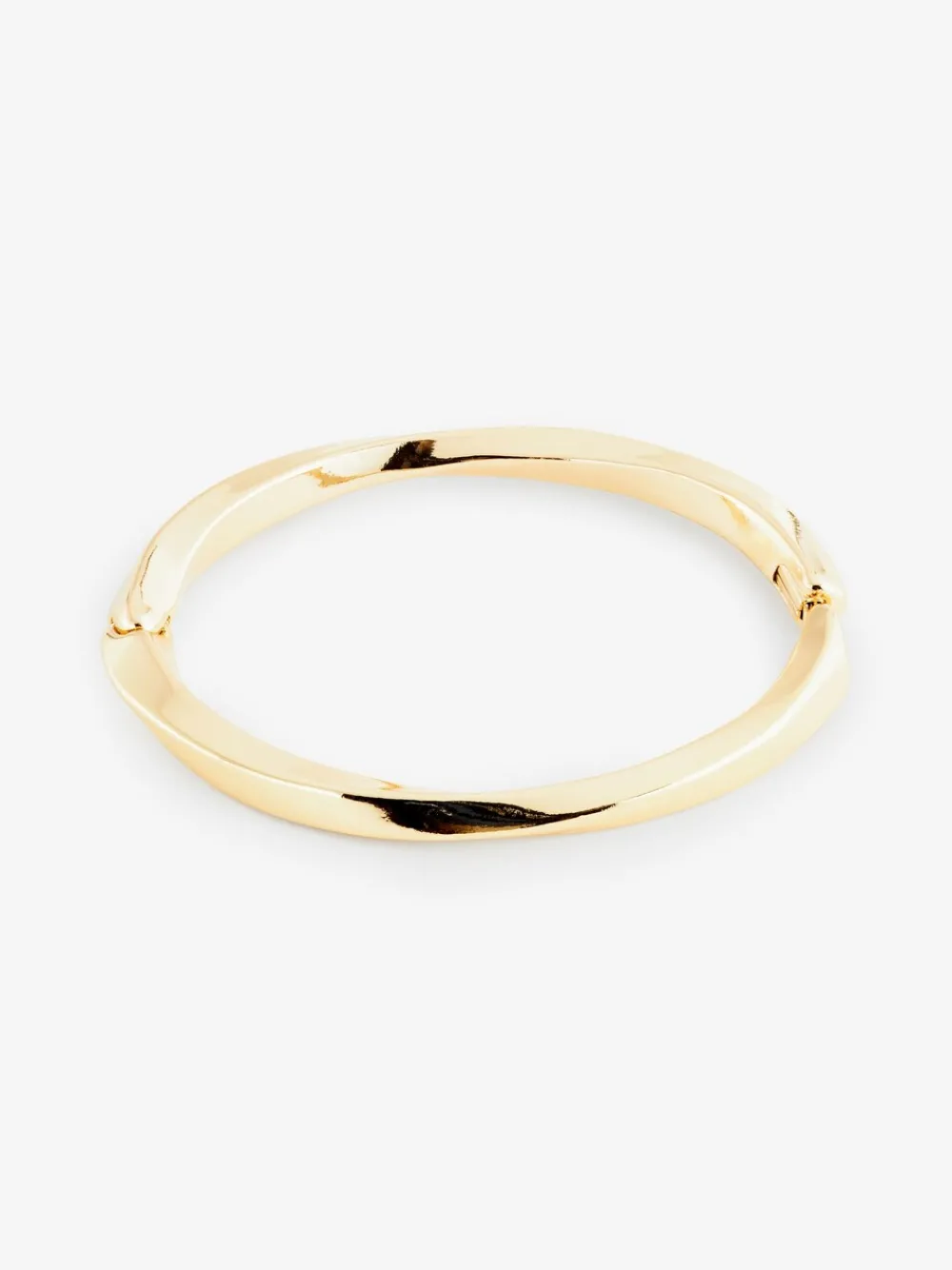 Deze eenvoudige Goudkleurige armband heeft een gedraaid ontwerp en een clipsluiting voor eenvoudig dragen. Ideaal als dagelijkse accessoire. Draaiontwerp Scharnierclipbevestiging Goudkleurig 99% gerecycled zink, 1% messing.