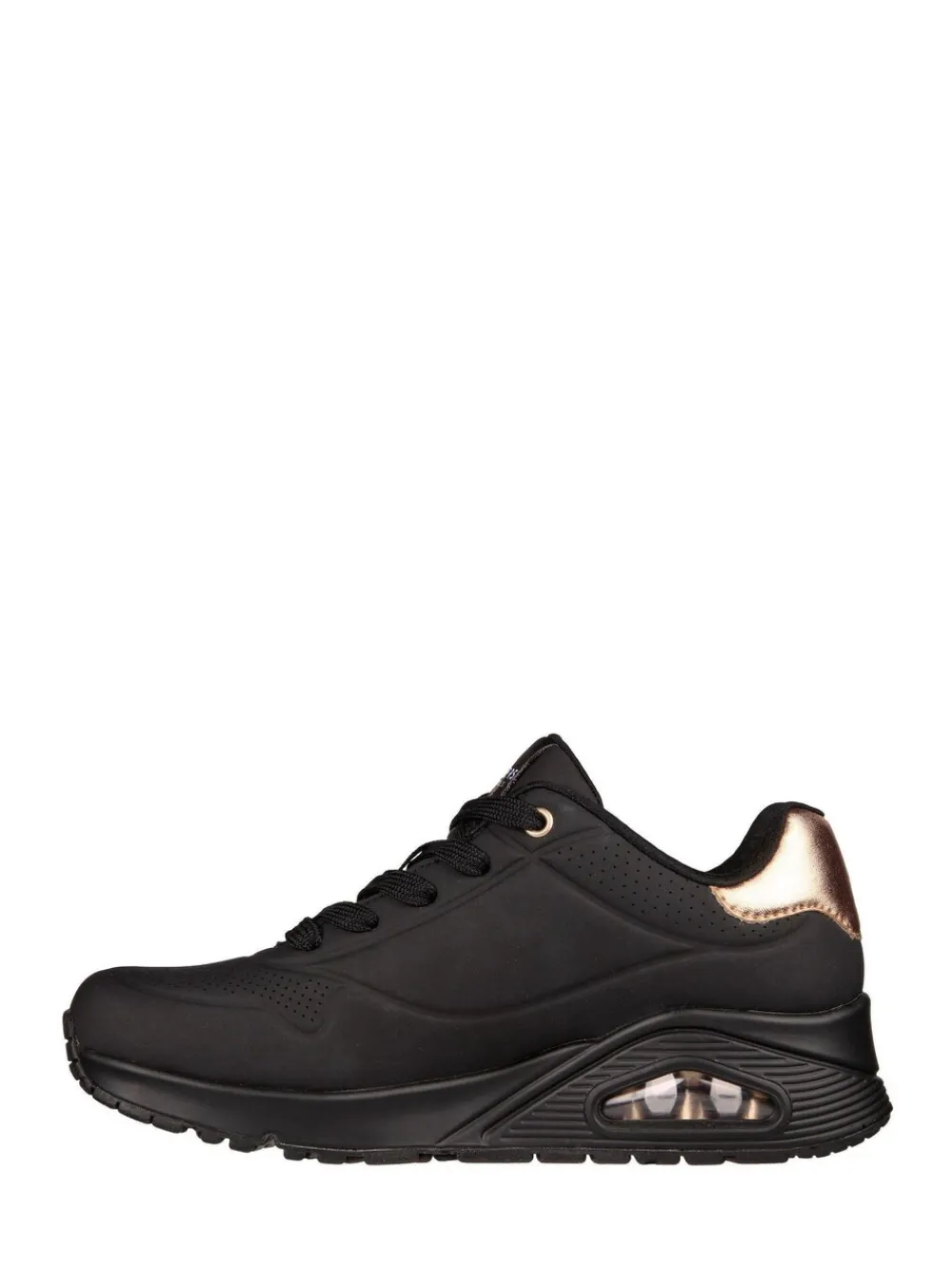 Ga voor goud en verhoog je stijl met Skechers Street Uno – Gouden lucht. Deze modieuze veterschoen heeft een soepel bovenwerk van durabuck met gouden accenten, een zachte Skechers Air-Cooled Memory Foam-binnenzool en een zichtbare Skech-Air airbag-tussenzool. Bovenwerk – overige materialen. Voering en voetbed – Textiel zool – Andere materialen.