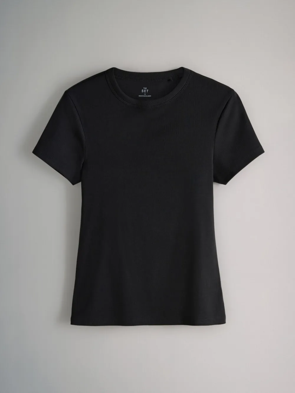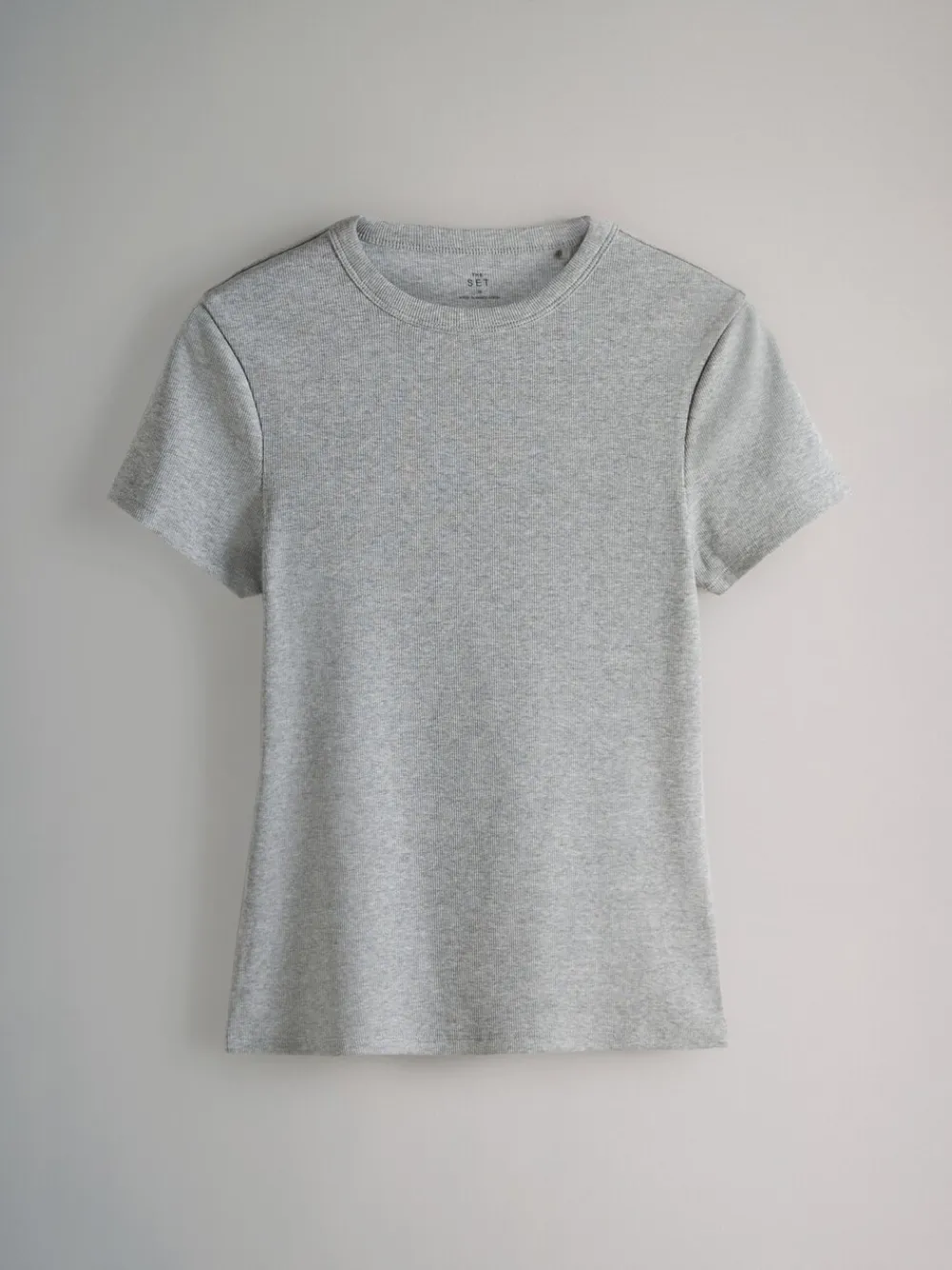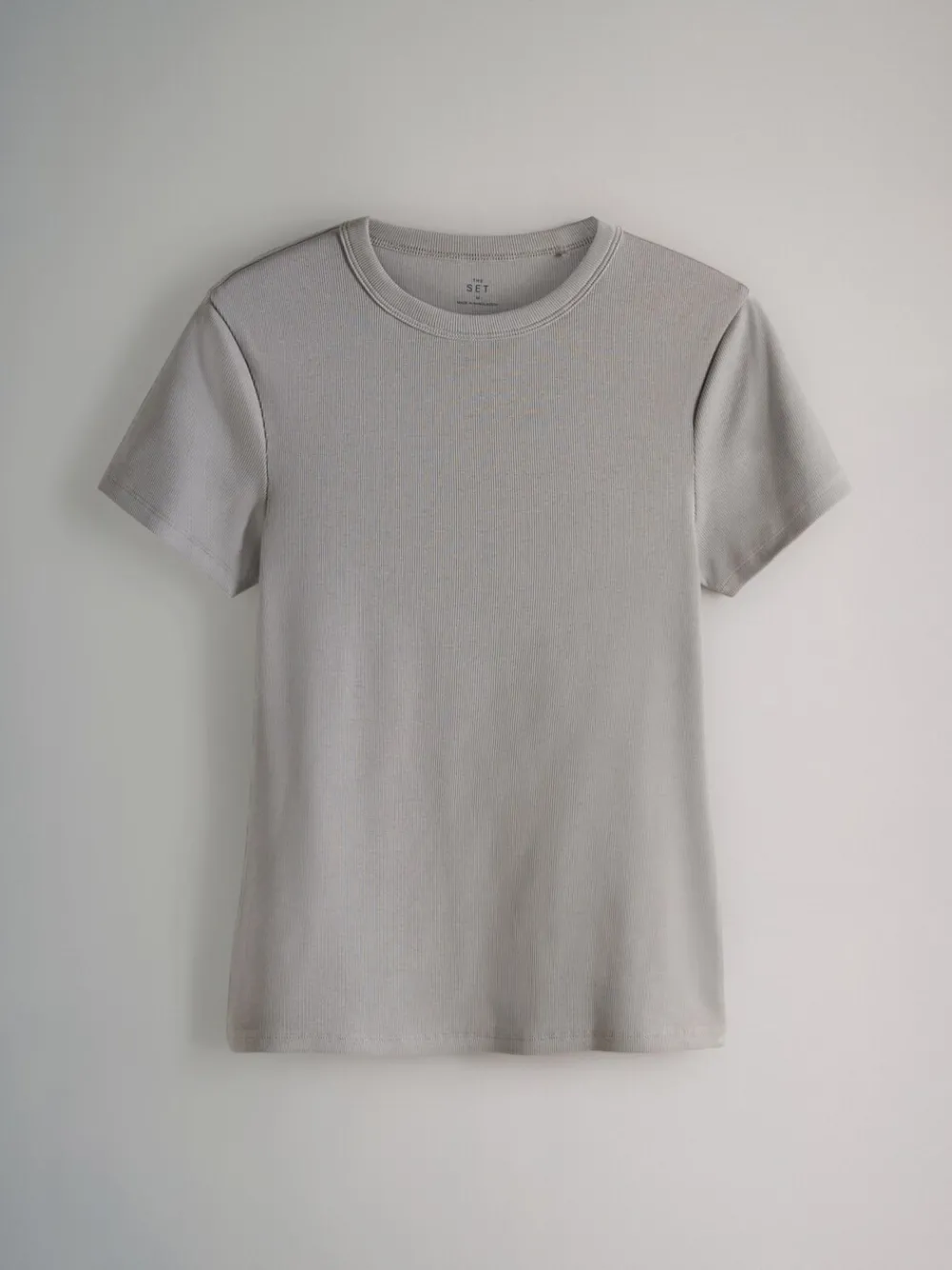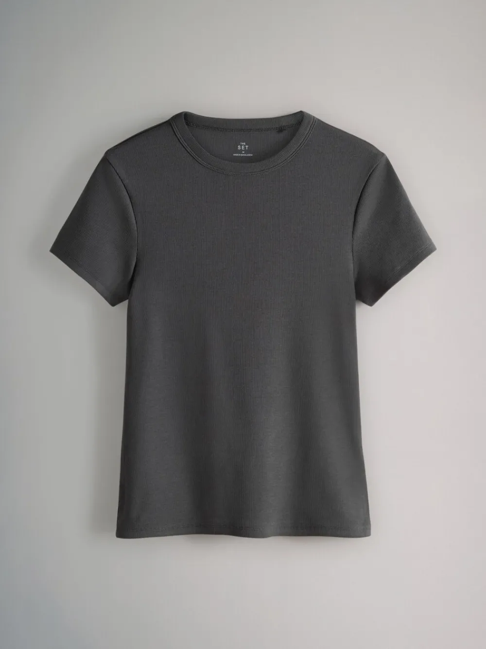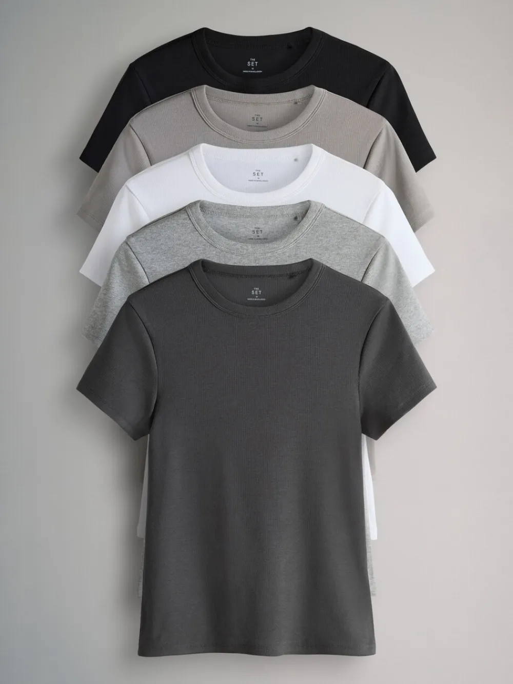 Discover your new go-to basics with these short sleeve ribbed t-shirts from THE SET. The handy 5 pack of wardrobe essentials are crafted from a comfortable ribbed fabric and designed for a flattering slim fit. With a range of tonal greys to suit every style, this 5-pack offers endless versatility for your everyday looks. 5 pack Ribbed fabric Slim fit Wardrobe essentials T-shirt, T-shirt, T-shirtv en T-shirt 95% katoen, 5% elastaan. T-shirt 85% katoen, 10% viscose, 5% elastaan.