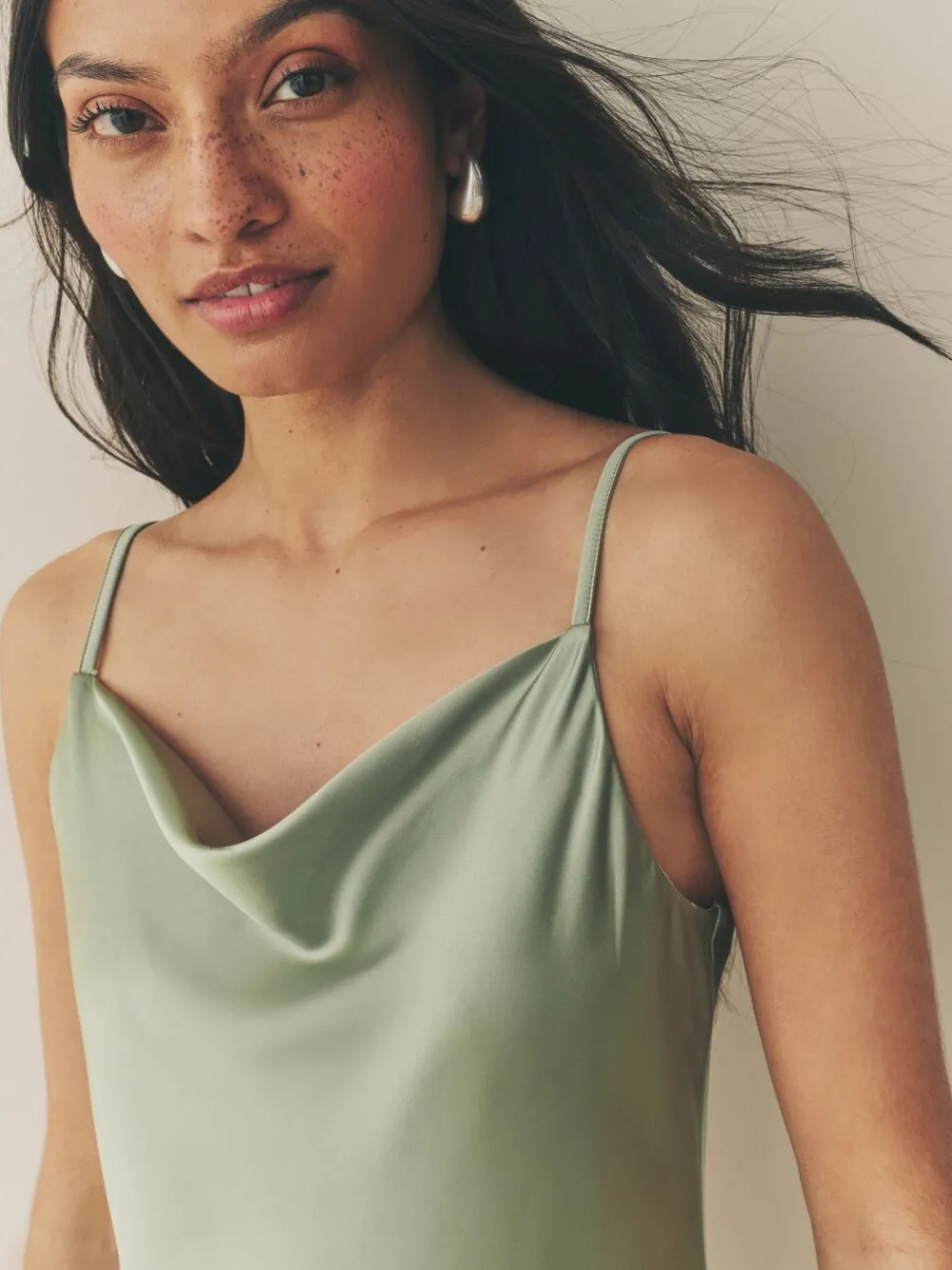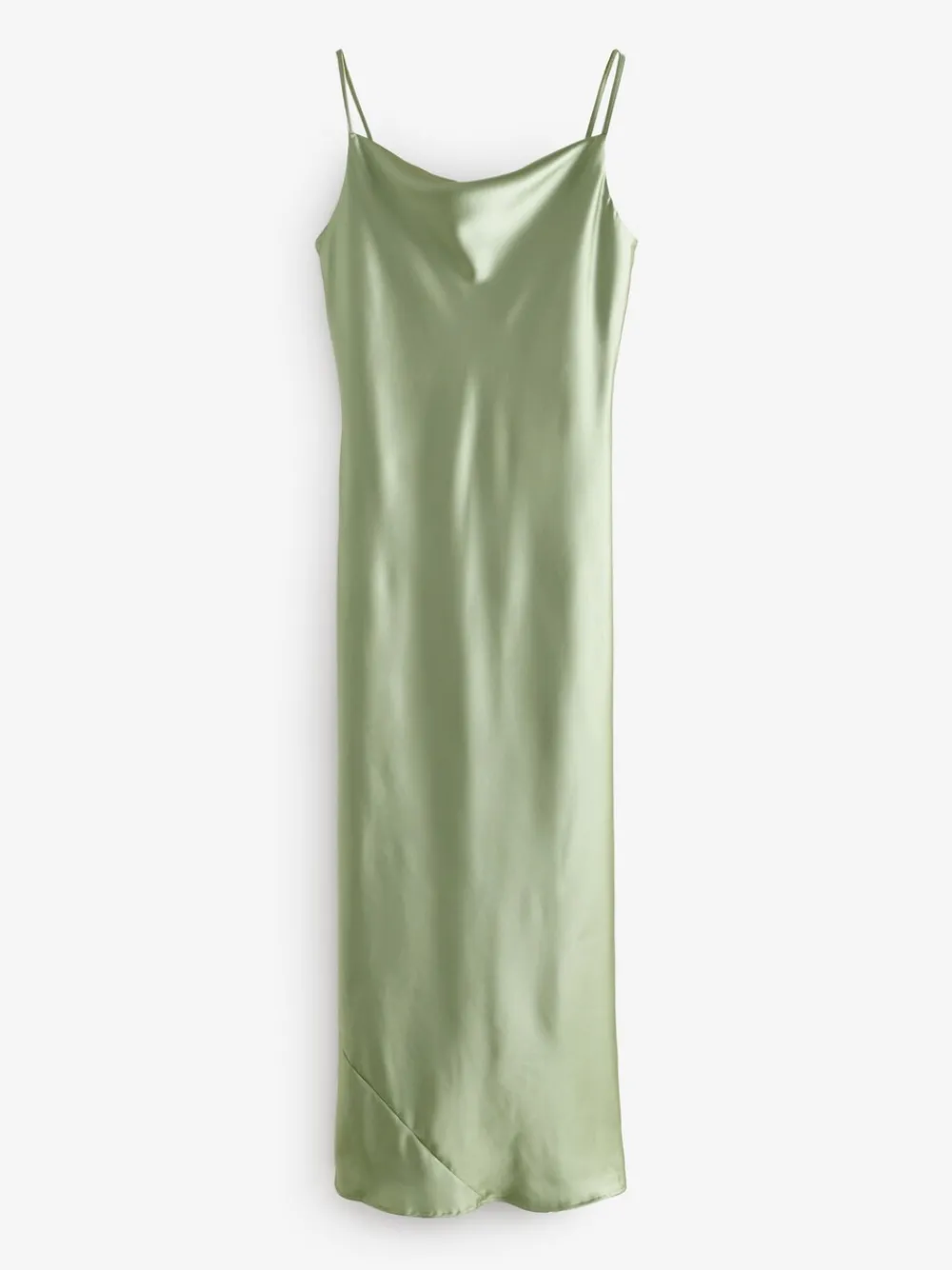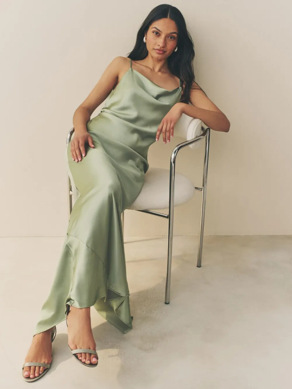 Turn heads in this satin cowl neck maxi dress. Perfect for wedding guests, bridesmaids, and special occasions. This stunning piece is made from a beautiful, lightweight satin fabric for an elegant and flattering fit. The cowl neckline and open back detailing create a stunning silhouette, whilst the back slit and shoulder straps provide comfort and movement. Complete with zip fastening, this maxi number is sure to impress. Cowl neck Open back Maxi length Special occasion dress Zip closure Standaardmaat van de zijkant van de nek tot de zoom 58.5″ / 148 cm. Machinewasbaar. 51% gerecycled polyester, 46% polyester, 3% elastaan. Artikelen met het curve-logo zijn verkrijgbaar in de maten 18 en groter. Onze tall collectie is ontworpen om te passen bij vrouwen van 5’10” en langer. Dit is verhoudingsgewijs vergroot door het lichaam, de benen en de mouwen om de perfecte pasvorm te bereiken. Verkrijgbaar in maat 8-20.