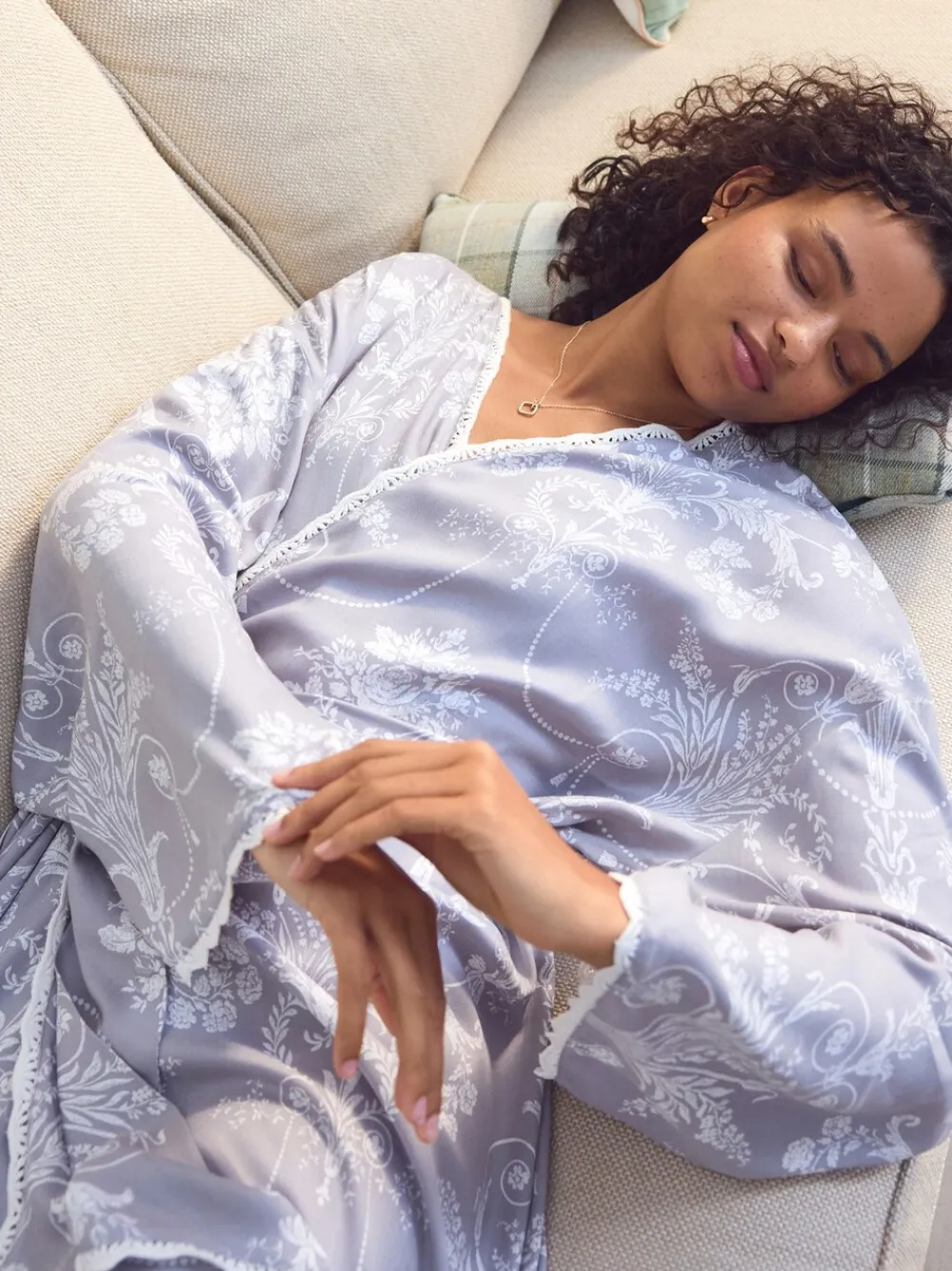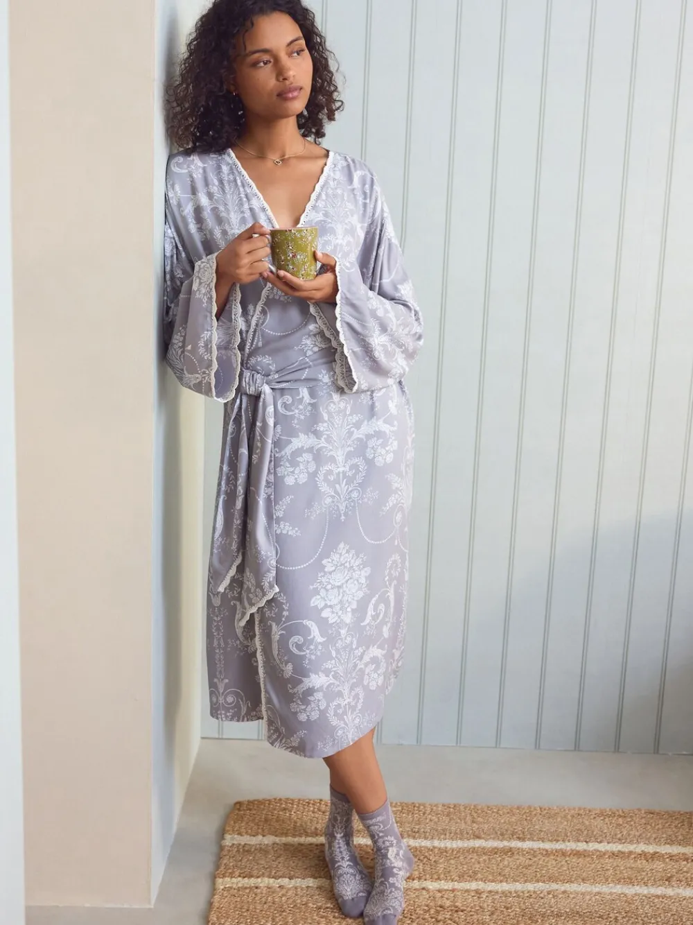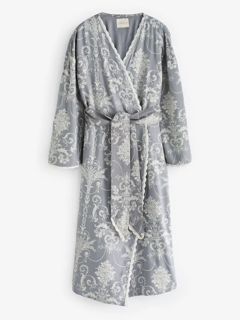 Voeg de perfecte aanvulling op uw ontspannen stijl toe met de Laura Ashley Josette kamerjas. Deze Midi-kamerjas is gemaakt van een zachte, soepele stof en heeft een prachtige Josette Print met kanten afwerking en een strikceintuur in de taille. Creëer een bijpassende look met de bijpassende pyjama’s en pantoffels. Midi-lengte Laura Ashley-merklabels Handige zakken Machinewasbaar. 100% viscose.