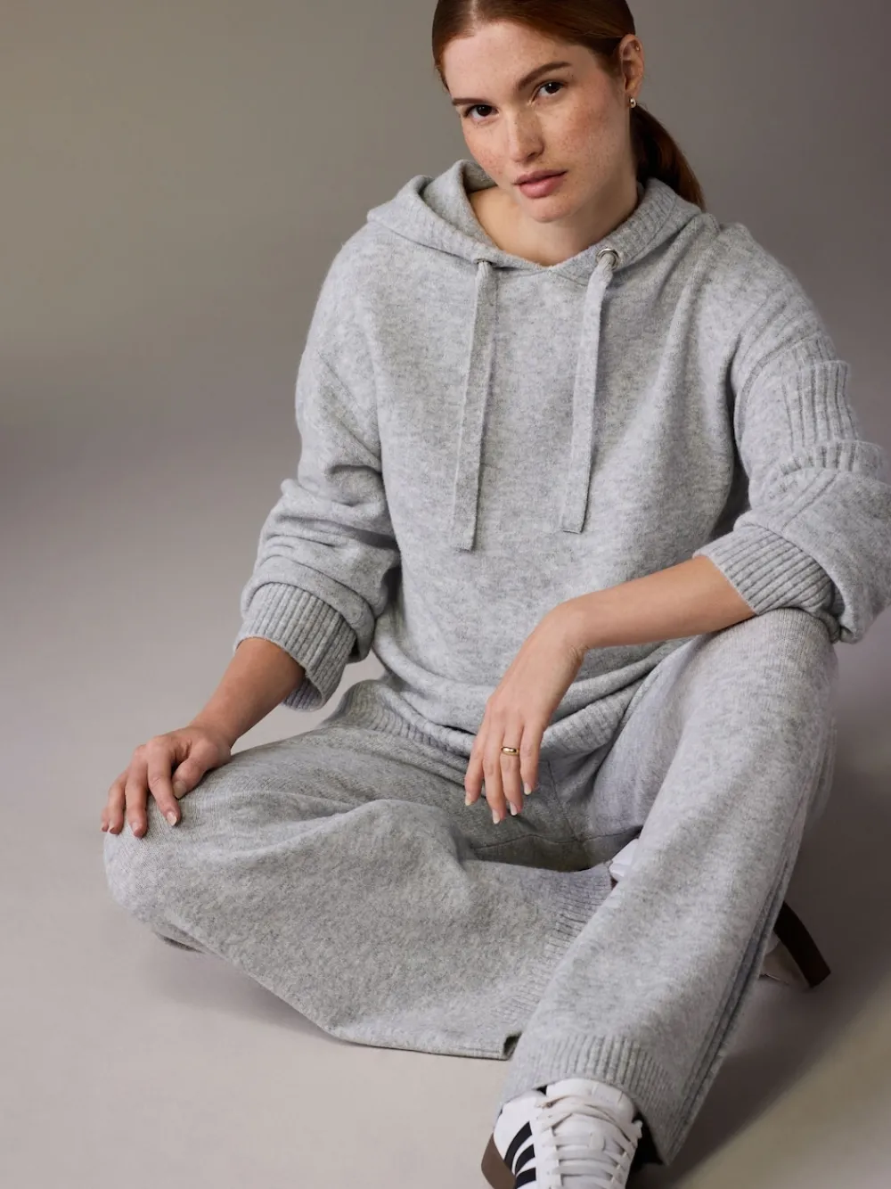 The perfect co-ord to take you through the autumn and winter, ideal for lounging or walks in the park. This soft hoodie is both comfortable and stylish, with a relaxed fit and a cozy hood to keep you warm. Long sleeves Hooded Relaxed fit Ribbed cuff and hem Side vents Machinewasbaar. 52% gerecycled polyester, 36% Acryl, 10% wol, 2% elastaan.