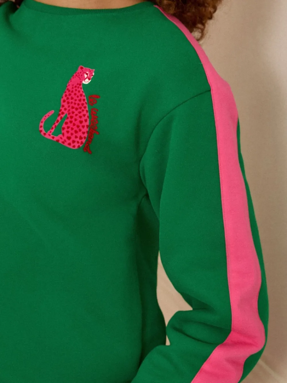 Groen luipaard met roze strepen – – Jersey sweatshirt met ronde hals*Love & Roses Sale