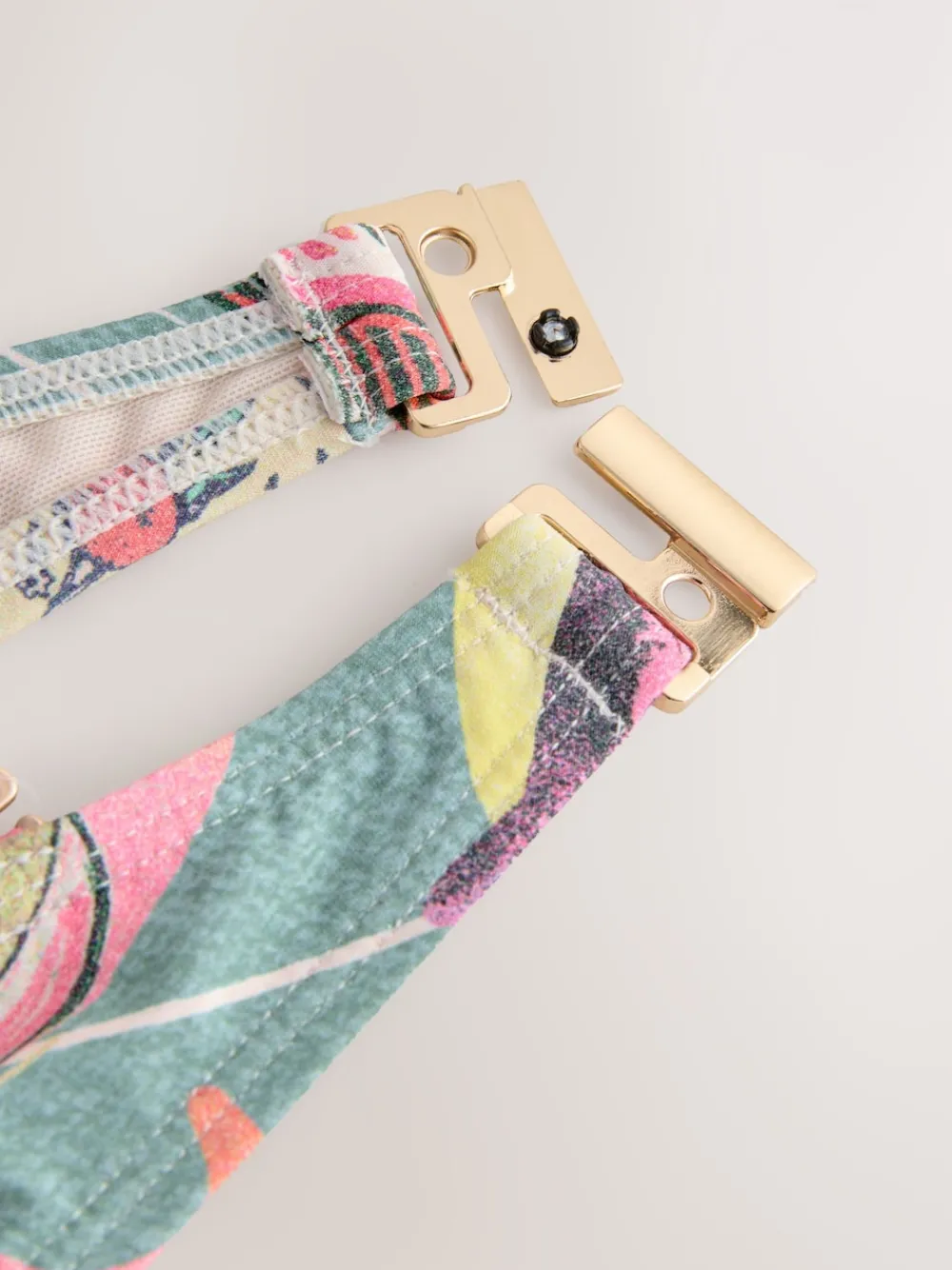 The bandeau style of this printed bikini top features moulded cups for a feminine shape, underwired for a gentle lift. Use the detachable straps for extra support when you need them, or go strapless to avoid those pesky tan lines. Our shape-enhancing bandeau bikini top features light padding to provide flattering support with removable straps. Buy in your normal cup size for a perfect fit, available in a wide range of prints and colours with a variety of bikini bottoms to match back with. Bandeau bikini top Detachable straps Underwired design Matching bottoms available Hoofdmateriaal 85% gerecycled polyester, 15% LYCRA® XTRA LIFE™ elastaan. Mesh 88% nylon, 12% elastaan.