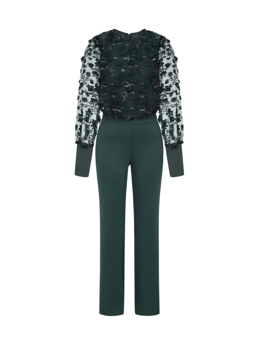 Groene jumpsuit van pontéstof met blousonmouwen*Hot Squash