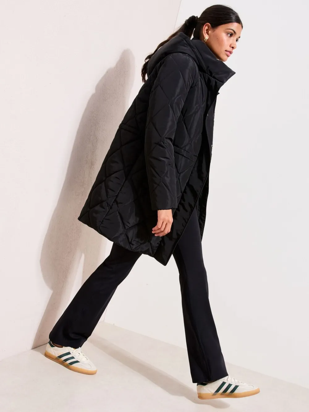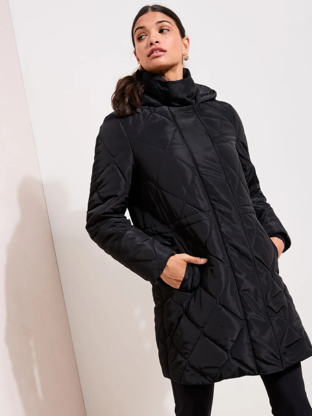 Stay warm and stylish this season in this essential padded coat. The mid-length silhouette and internal elasticated fastening offer a flattering fit and extra protection against the cold. Featuring a practical hood and side pockets, this is a timeless winter wardrobe staple. Warm padded design Hood with poppers Internal elasticated fastening Side pockets Hoofdzakelijk 100% polyester. Voering 100% polyester. Vulling 100% polyester.