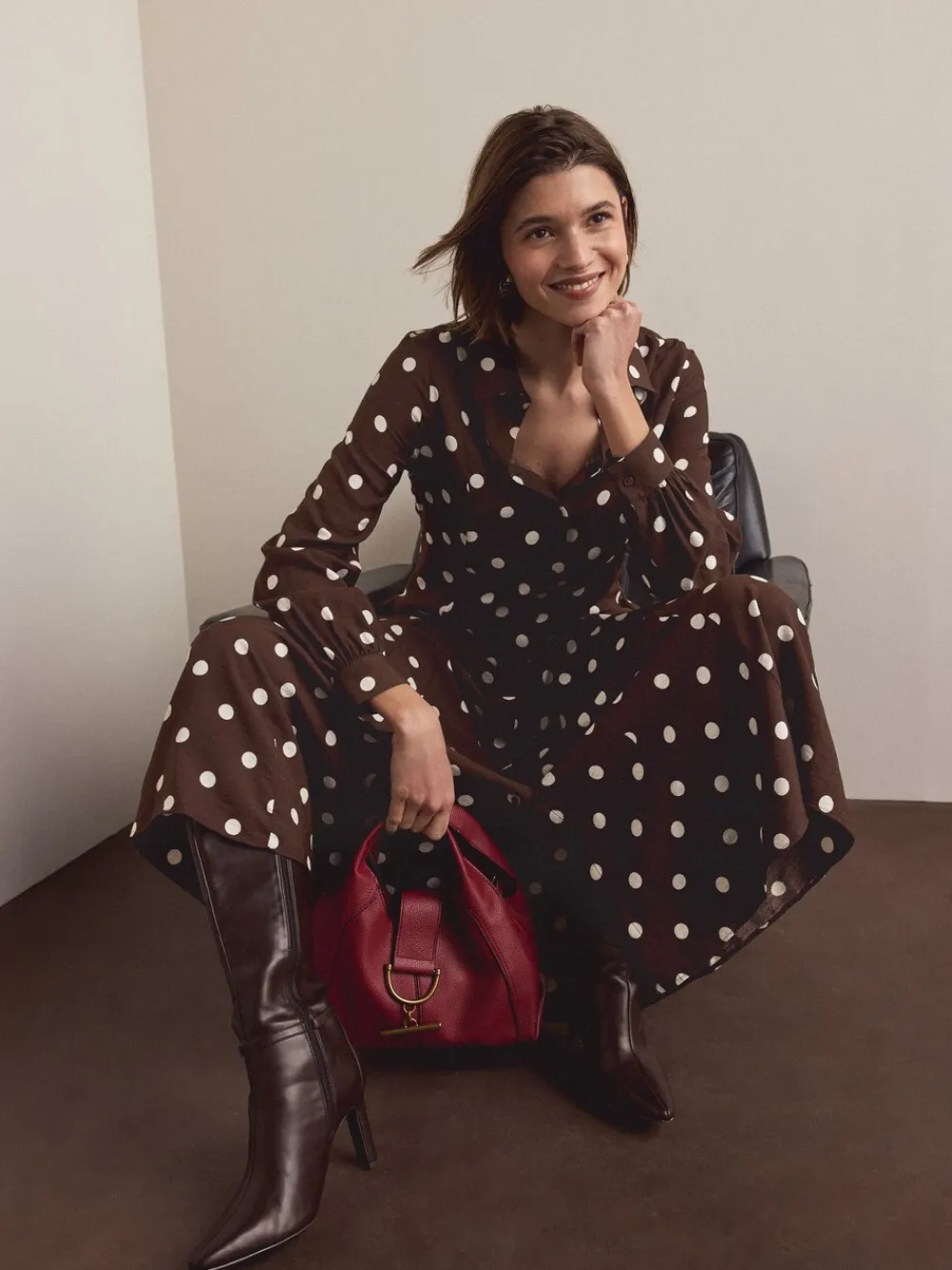 | Color | Chocolade Bruin/Ecru met stippen |