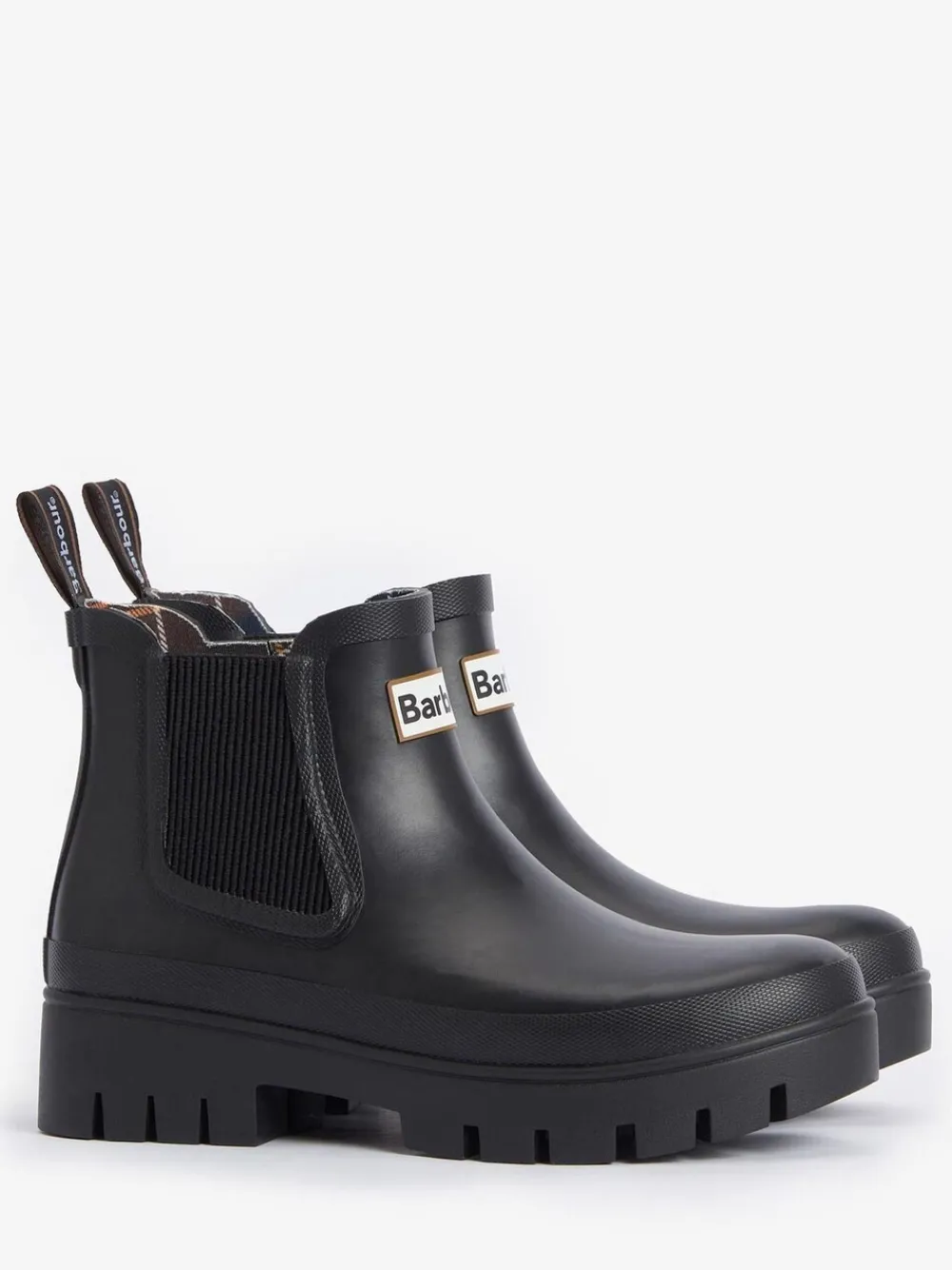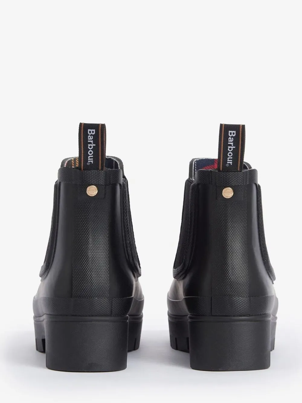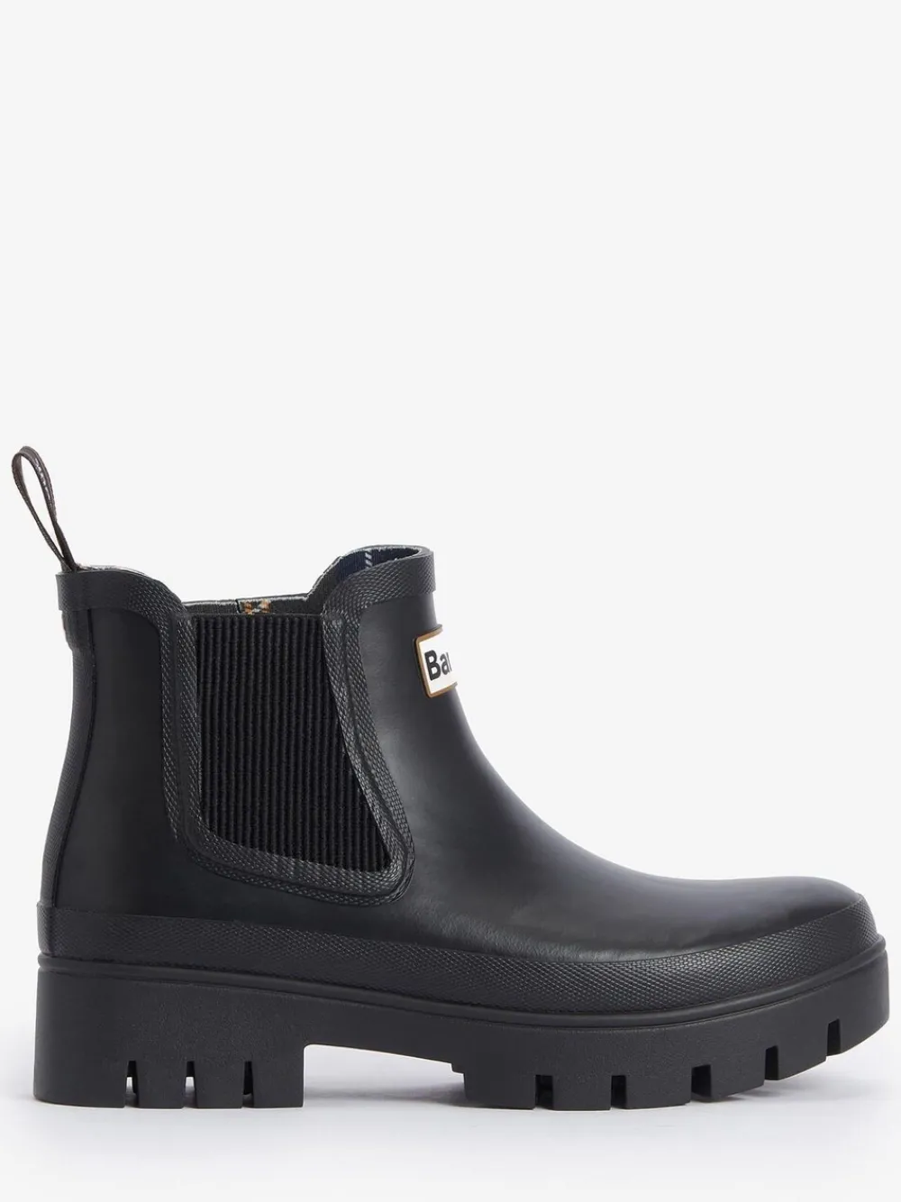 A Chelsea wellington boot set on a chunky lug sole. Features a classic tartan lining. Bovenwerk – overige materialen. Voering en voetbed – Textiel.
