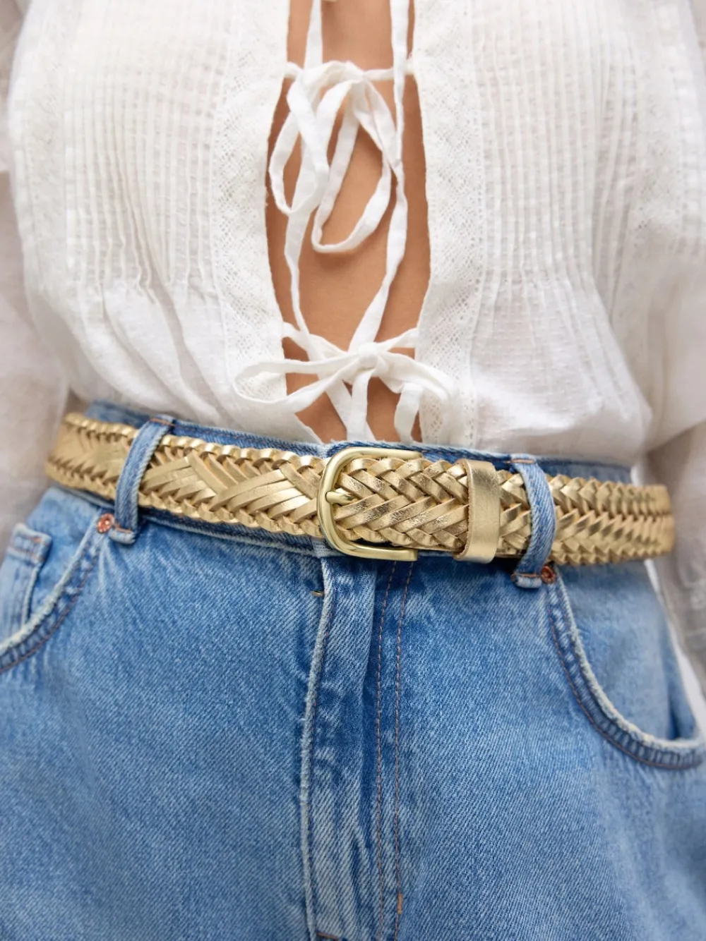 Deze veelzijdige riem met handgevlochten ontwerp is gemaakt van leer, heeft een draagband en een metalen gesp. 100% leer Handgevlochten Metalen gesp 100% leer.