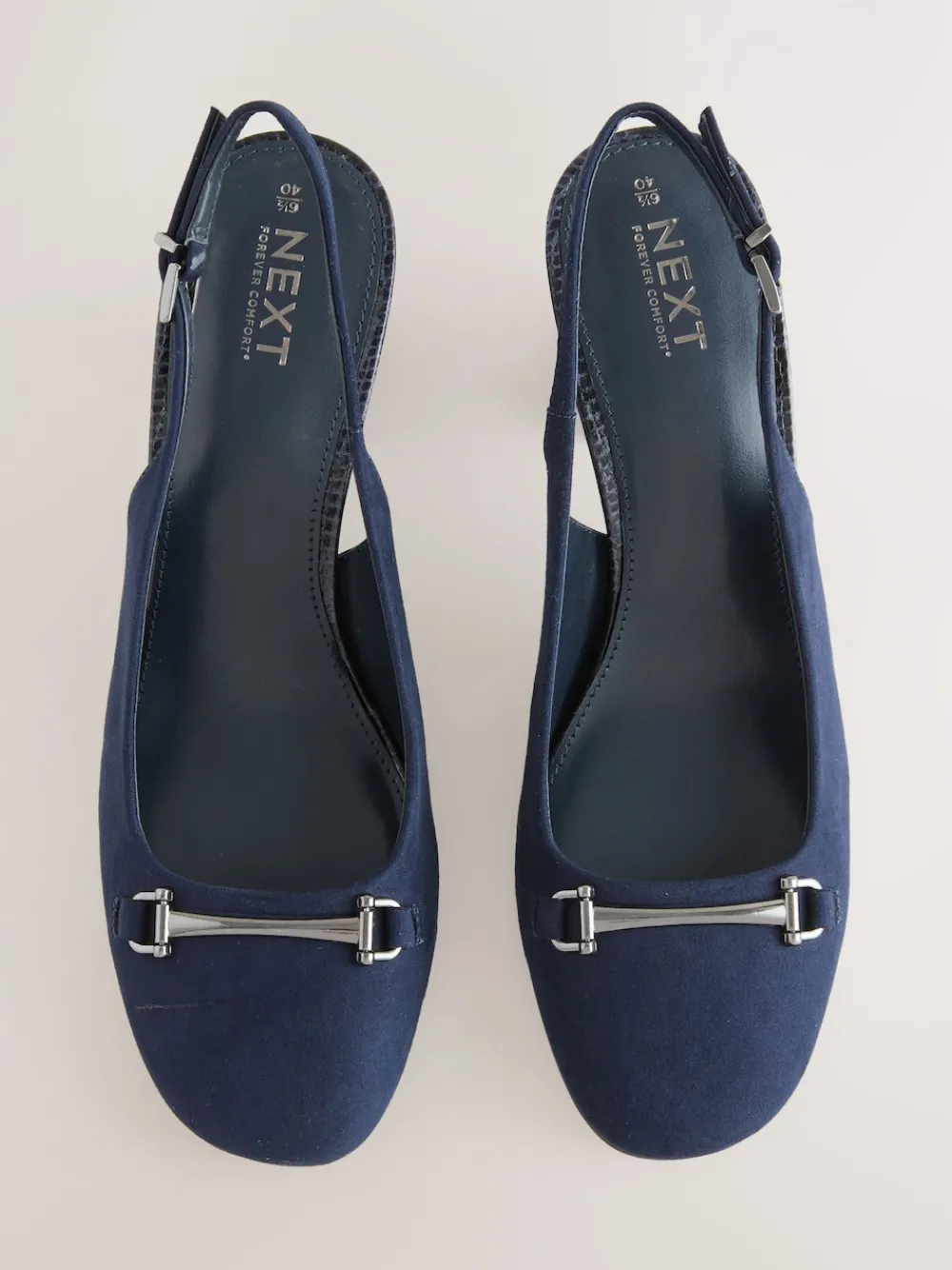 Deze stijlvolle slingbackhakken zijn verkrijgbaar in een standaard of wijde pasvorm, hebben een ronde, gesloten neus en hardwaredetails aan de voorkant, een Forever Comfort ® voetbed met demping en een blokhak. Ronde neus Slingback-band Forever Comfort ® voetbed hakken Hakhoogte 8,5 cm. Bovenwerk – textiel; voering en voetbed – overige materialen, zool – Andere materialen.