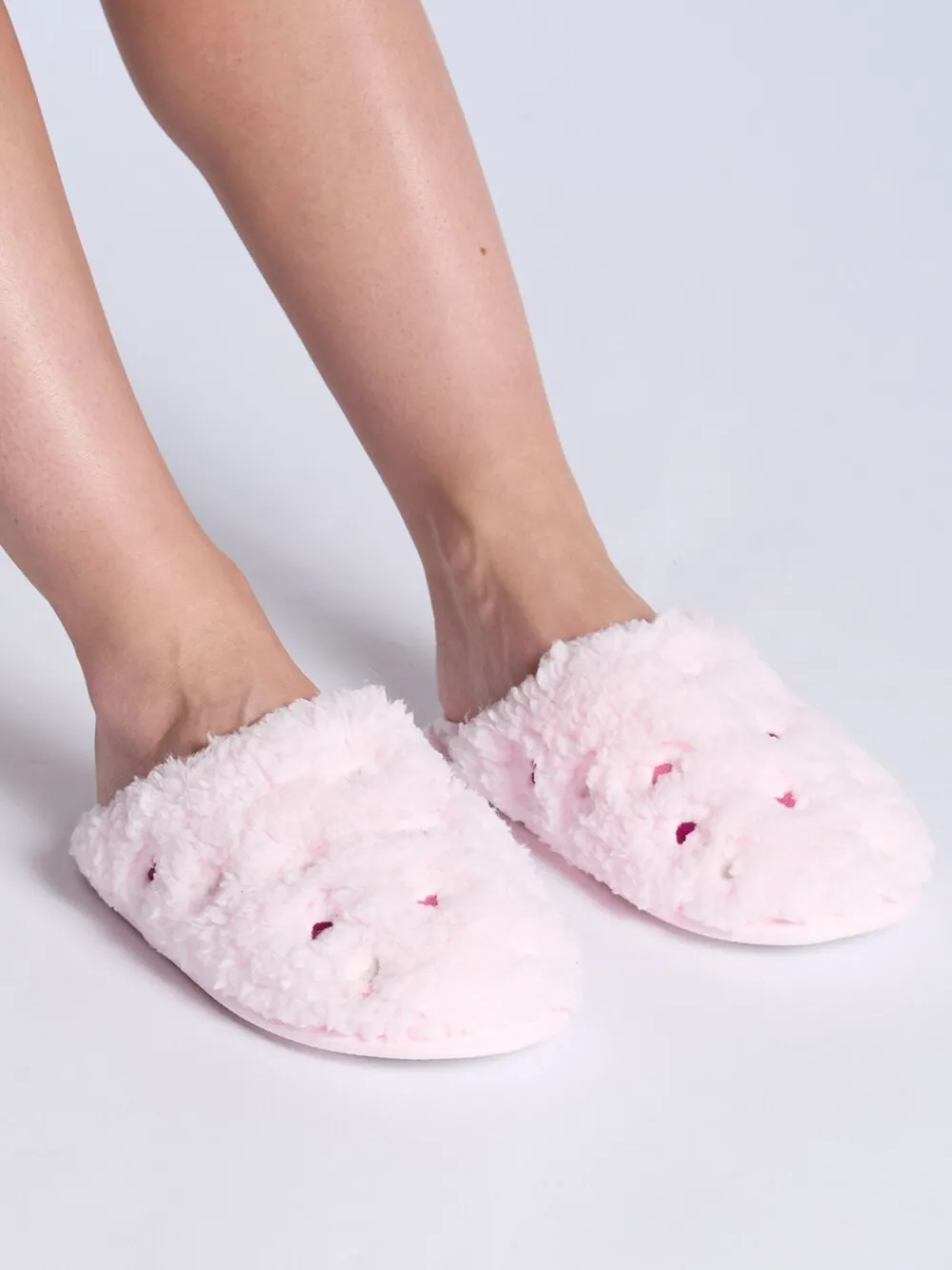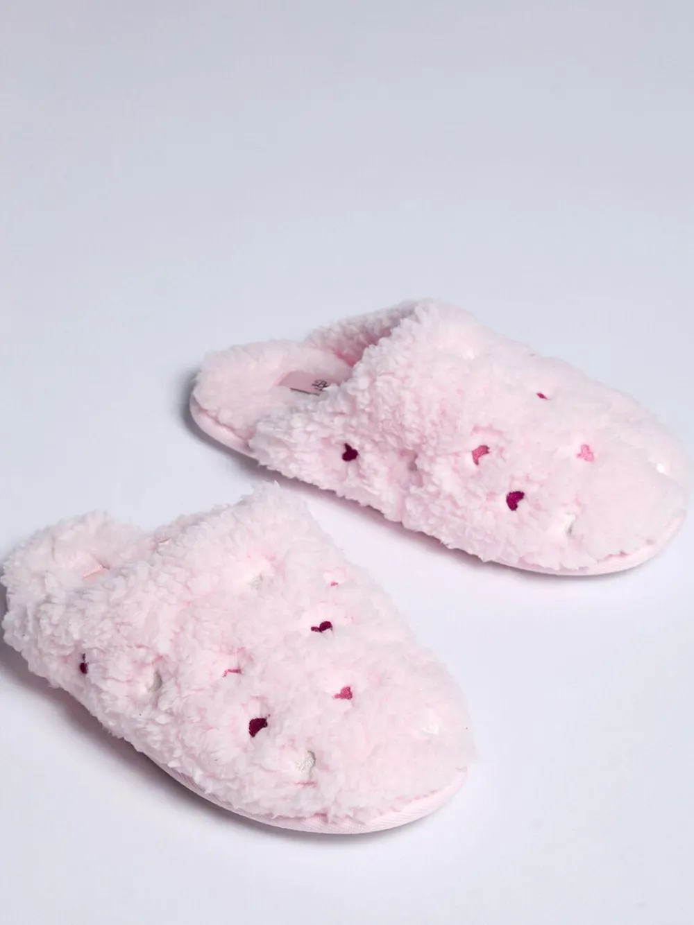 Heart Embroidered Borg Mule Slippers*Boux Avenue Online