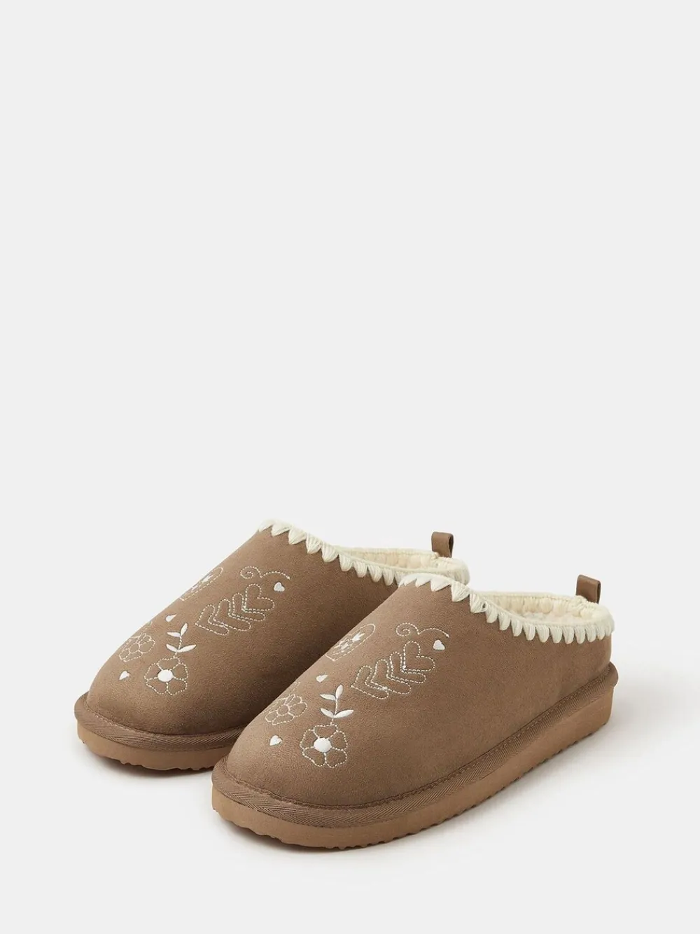 Perfect for days lounging around the house and cosy nights-in, these slippers are embroidered with cute heart and floral designs and finished with a snuggly Borg lining. So soft and comfy, it’ll feel like walking on clouds. Bovenwerk – 100% polyester. Voering – 100% polyester.