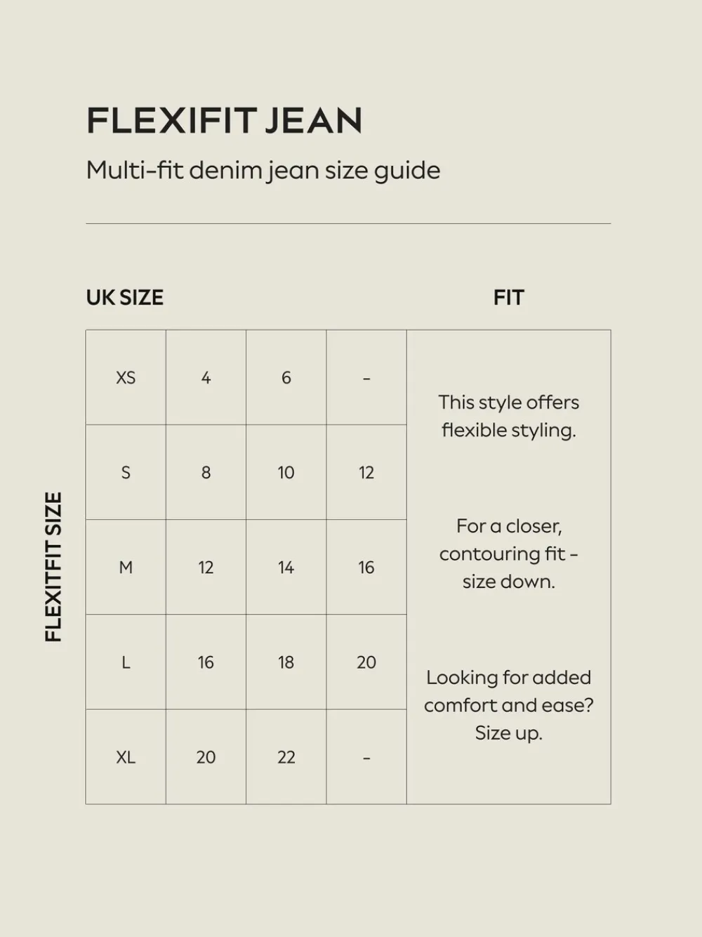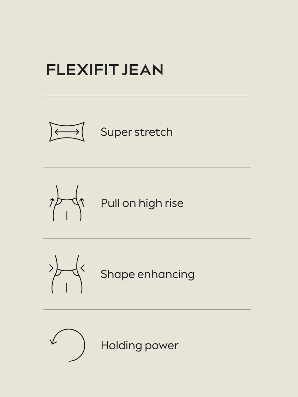 Flatter your shape with our Superstretch Flexifit Jeans. Designed with a pull-on waist and a high-rise fit that sits just above the belly button, these jeans offer all-day comfort and support. The ultra-stretchy denim moves with your body without losing shape, while the contoured seams enhance your natural curves. Fitted through the waist and hips, they fall into a full-length, wide-leg silhouette that extends past the ankle. Finished with mock front pockets for a smooth look, these are the ultimate jeans for effortless shaping and style. Regular voor binnenbeenlengte 29″ / 74 cm. Long voor binnenbeenlengte 31″/ 79 cm. Machinewasbaar. 89% katoen, 8% elastomultiester, 3% elastaan.