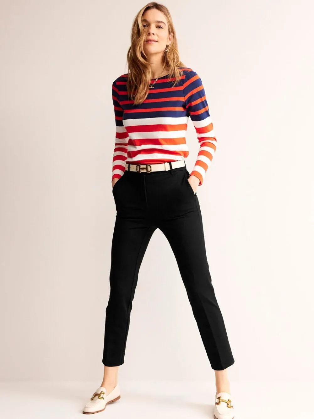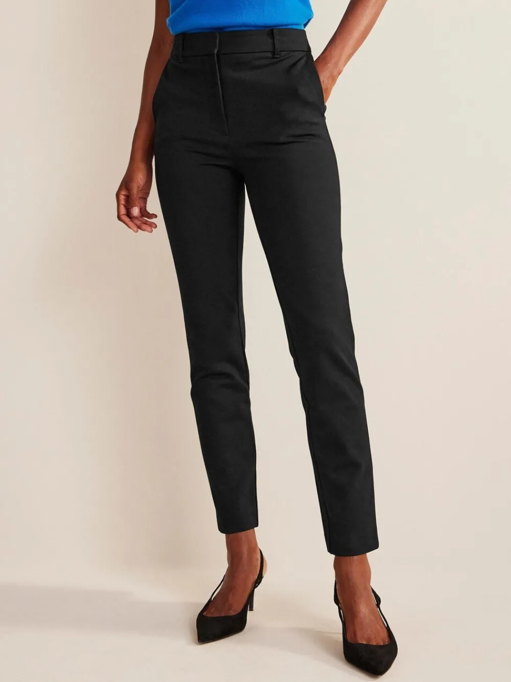 Deze getailleerde broek heeft een strakke pijp en een zoom die tot aan de enkels reikt. Het is een klassieke stijl voor een nette, alledaagse look. De jurk valt op de natuurlijke taille en de verborgen sluiting aan de voorkant zorgt voor een gepolijste afwerking. Machinewasbaar. 65% viscose, 30% nylon, 5% elastaan.