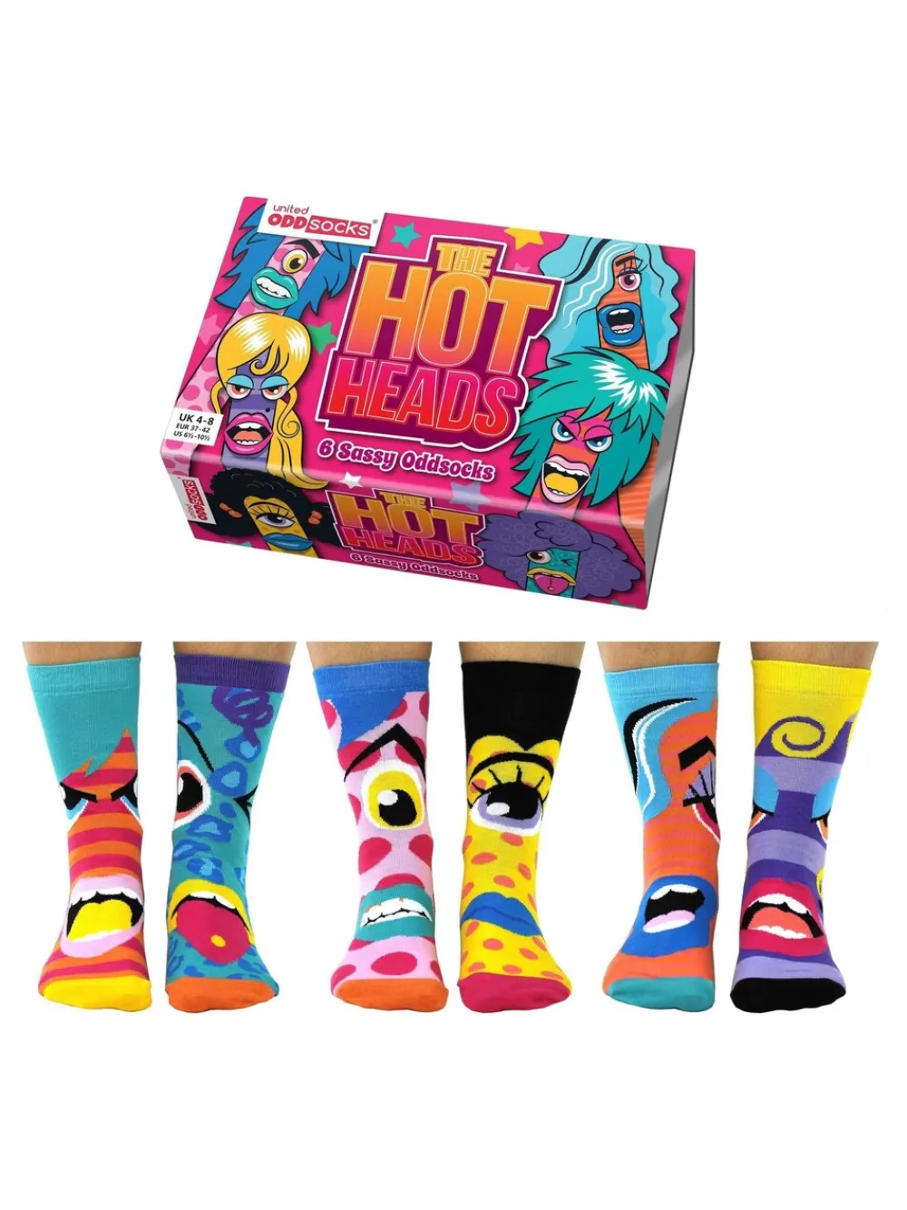 Meet the colourful Hot Heads! They’re bold and fun and are ready to add a spring to your step. Our confident and outrageously fierce Oddsocks will drive your feet crazy! Go on, be a sass-bomb with our fabulous Hot Heads, 6 wild Oddsocks to mix and mismatch. 6 individual socks to mix and mismatch in UK size 4-8. Machinewasbaar. 72% katoen, 26% nylon, 2% elastaan.