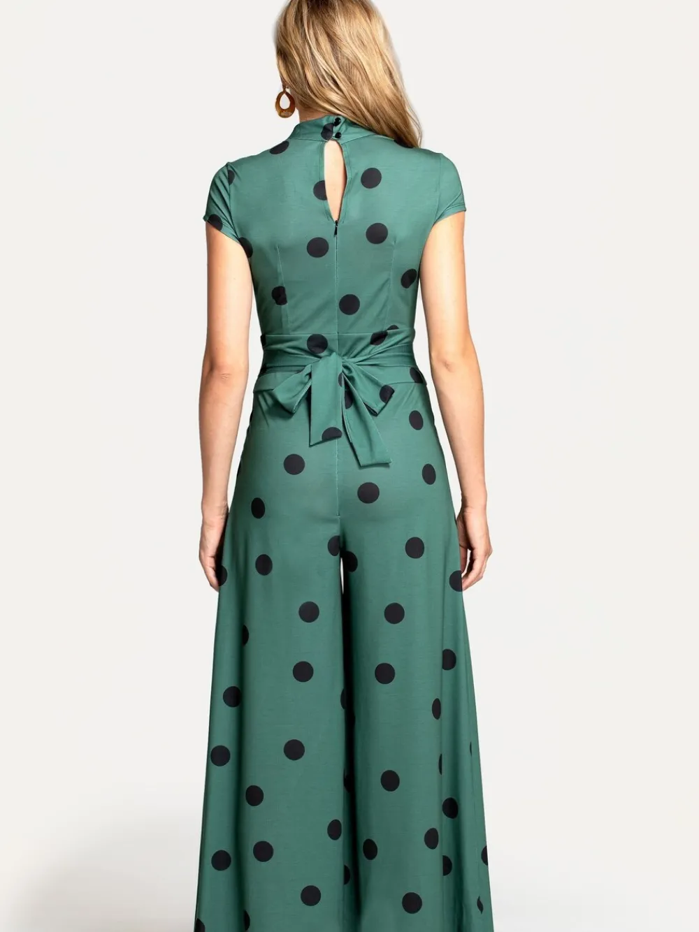 HotSquash groene jersey jumpsuit met wijduitlopende pijpen*Hot Squash Outlet