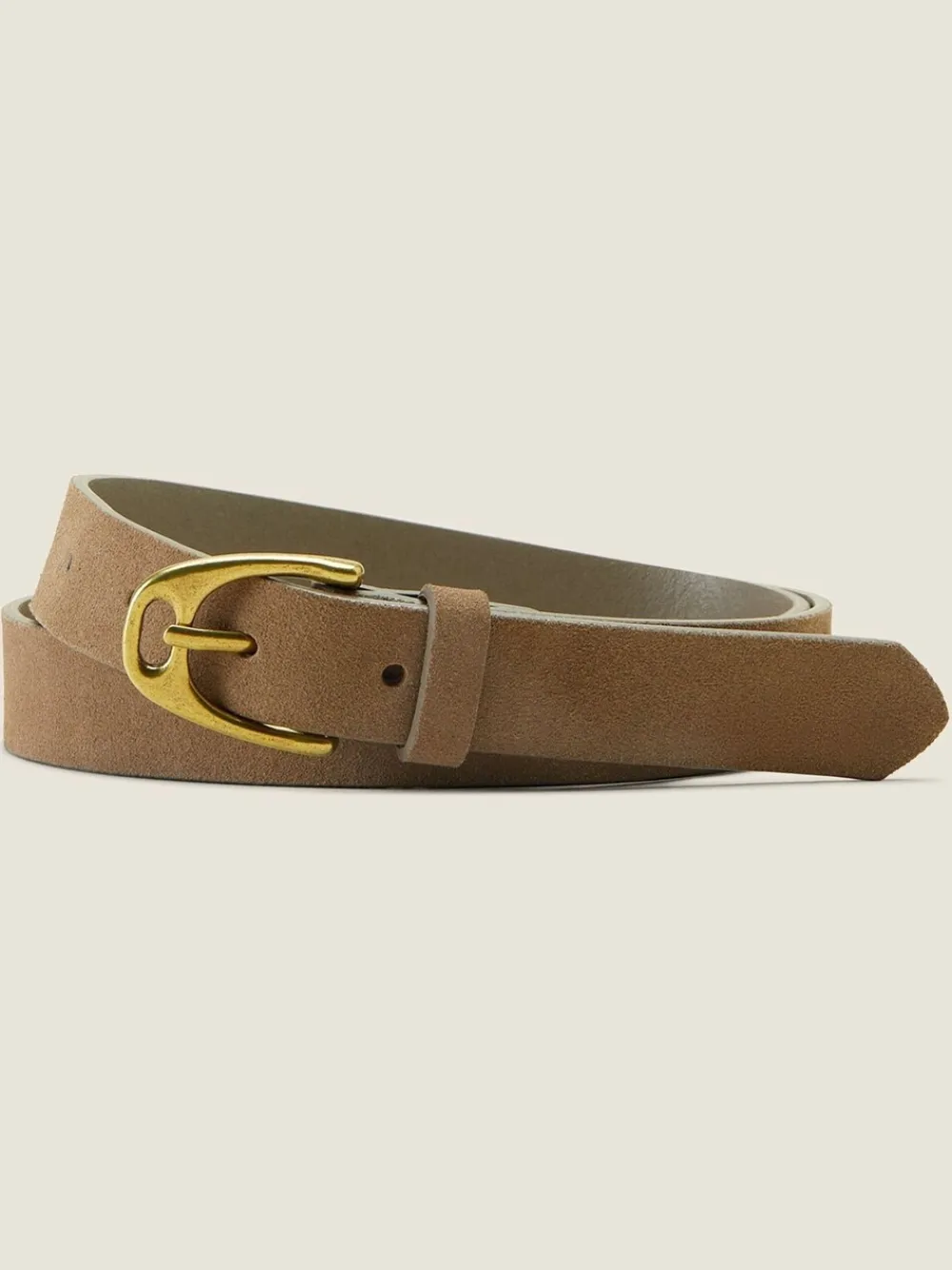 Deze veelzijdige riem is gemaakt van zacht, soepel suède of leer en afgewerkt met een gesp in paardenstijl. Hij is geweldig bij alles, van Denim tot broeken. Breedte is 1 inch. 100% leer.