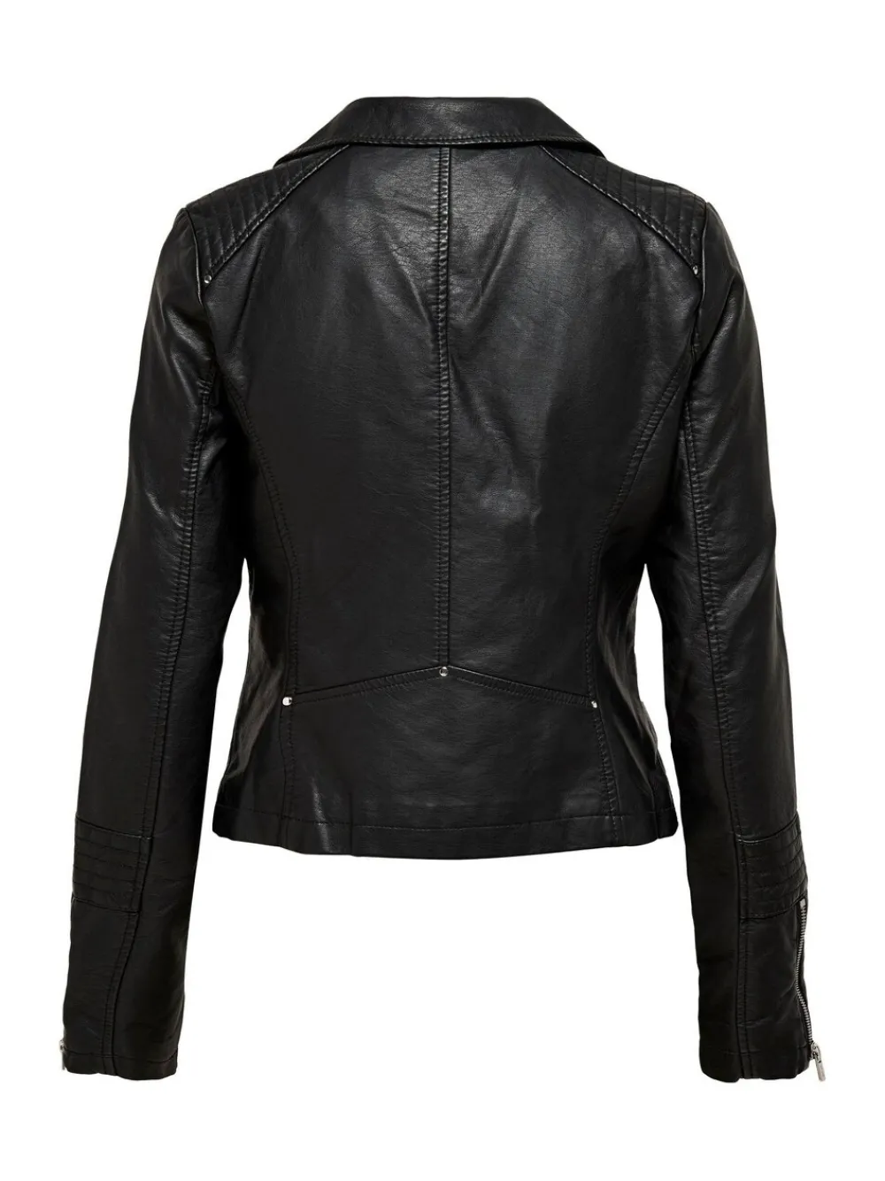 Een imitatieleren bikerjack van Only met zilverkleurige hardware en lange mouwen. Maatconversies: XS -UK 6 S -UK 8 M -UK 10 L -UK 12/14 XL -UK 16 50% polyethyleen, 50% viscose.