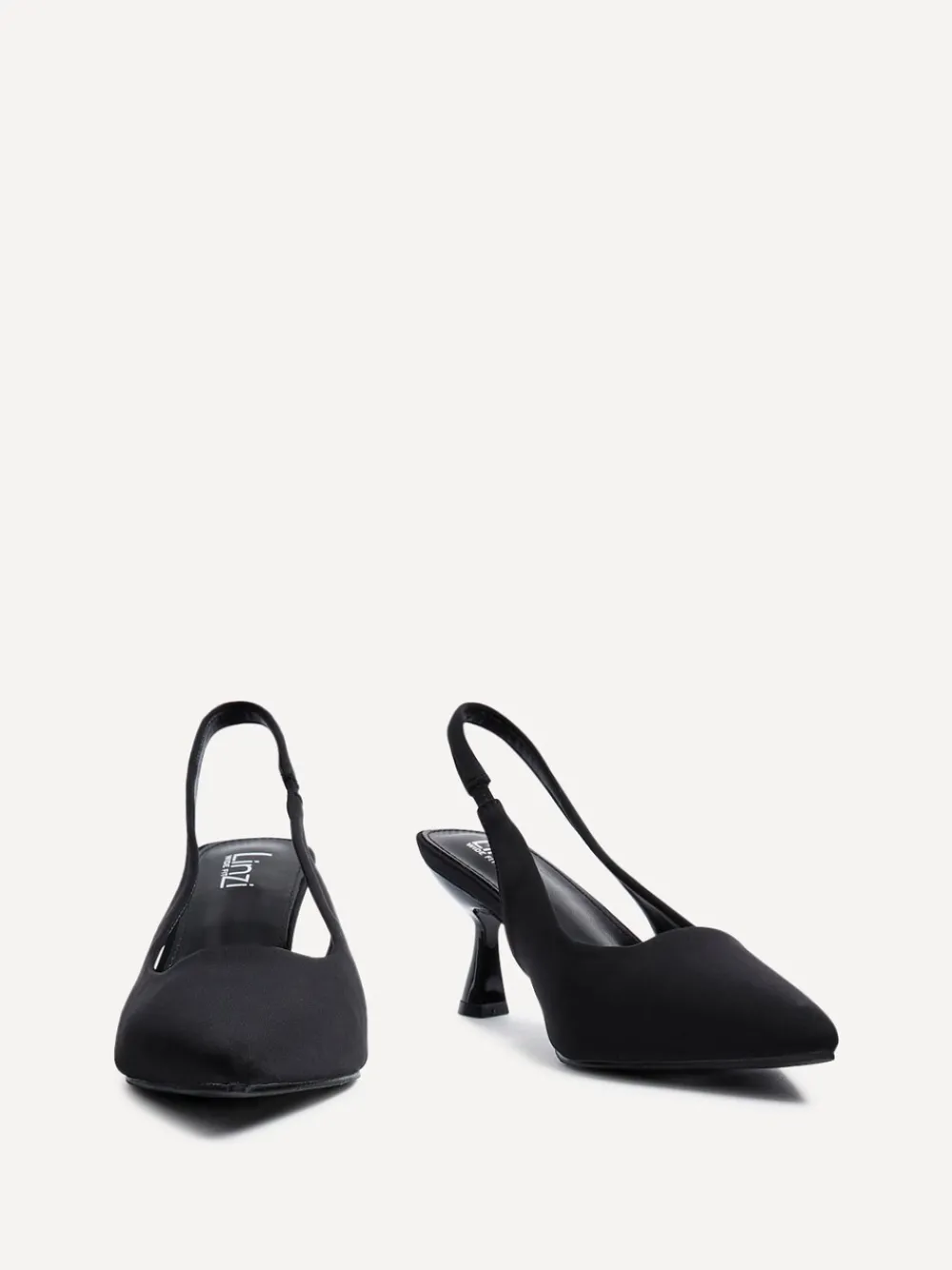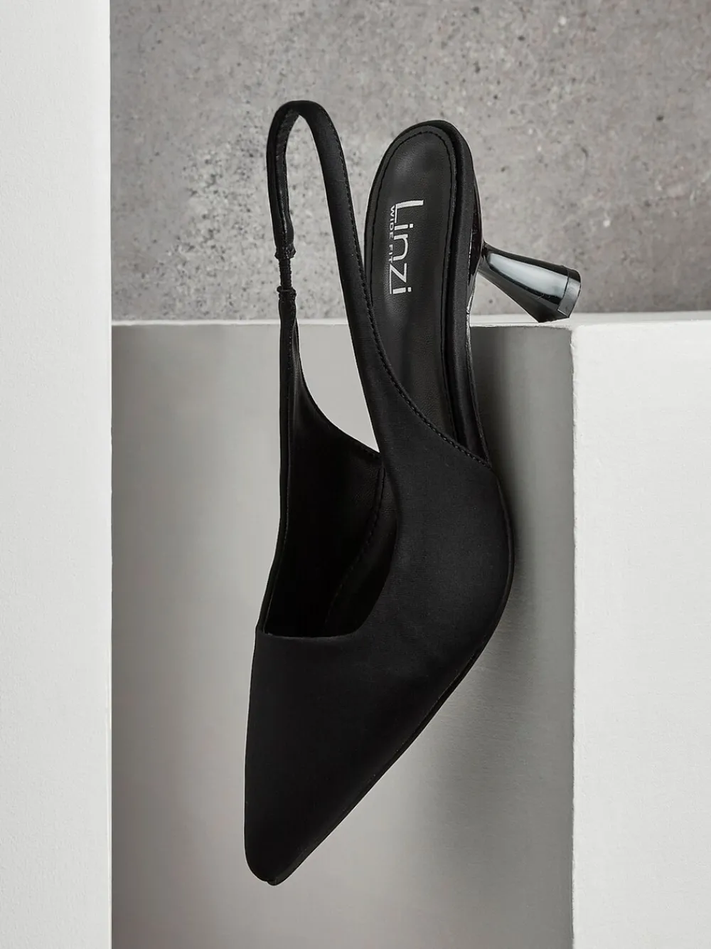 Verfijn uw look met onze zwarte Izzie stiletto pumps. De strakke afwerking en het slingback-design voegen een vleugje elegantie toe aan elke outfit. Loop vol vertrouwen op onze luxe hakken. Dankzij onze Linzi collectie met wide fit kunt u uw stijl met vertrouwen tonen, zonder dat dit ten koste gaat van het comfort. Houd er rekening mee dat het luipaardPrint patroon per paar kan verschillen. Hakhoogte 6,5 cm. Bovenwerk – textiel. Voering en voetbed – overige materialen, zool – Andere materialen.