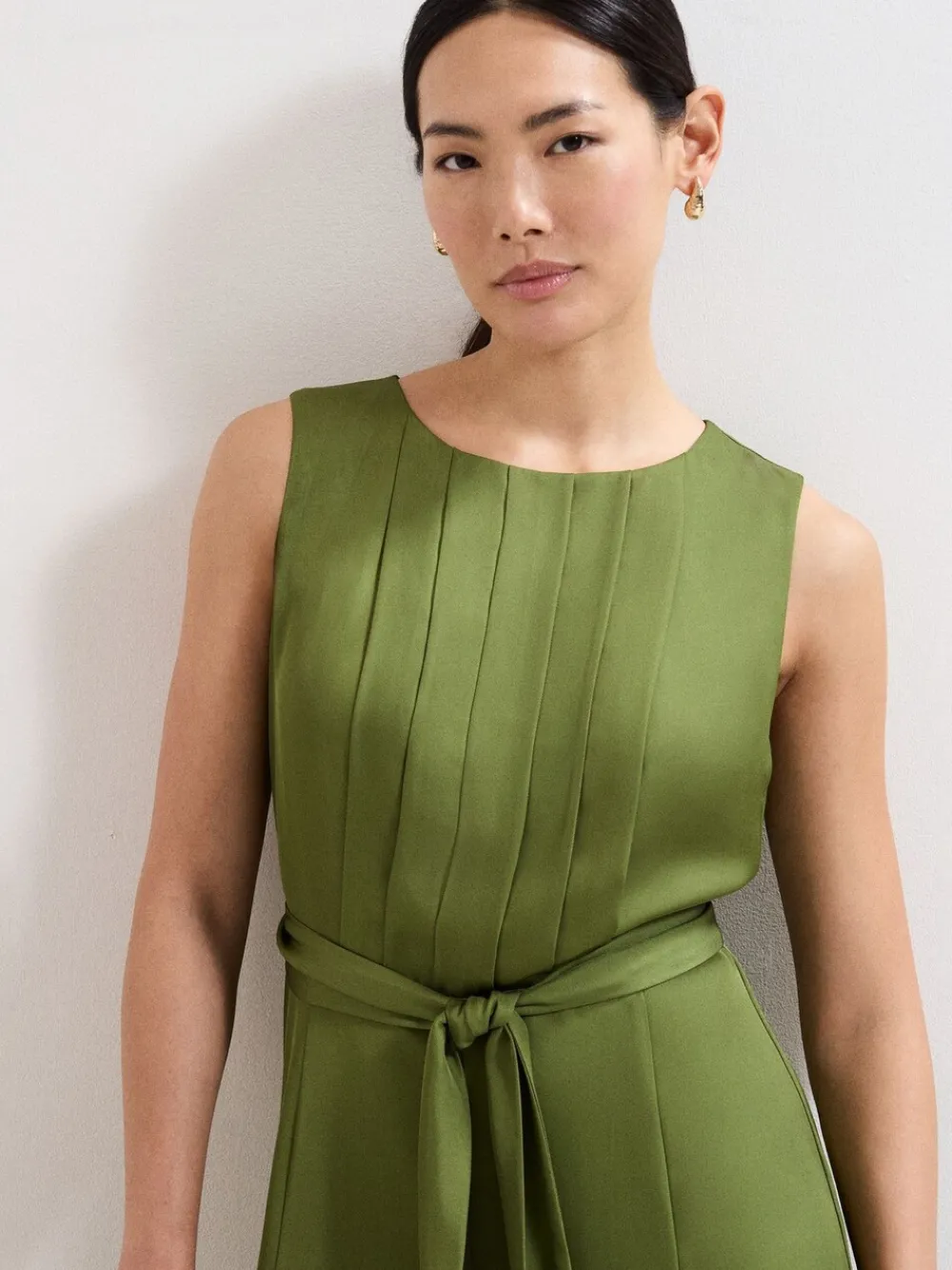A Phase Eight favourite, our bestselling wide-leg jumpsuit has arrived in a brand new colour. Made in a gorgeous green shade, this jumpsuit features refined pleats on the bodice, a matching tie belt and a modern wide leg silhouette. Style with your favourite heels and clutch for the ultimate event look Machinewasbaar. 100% polyester.