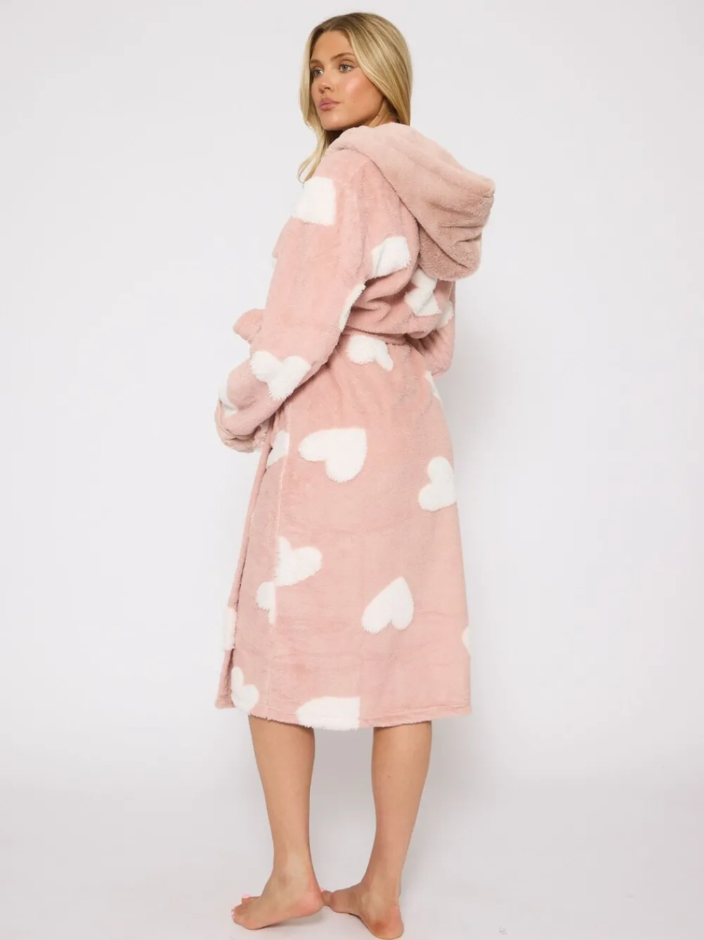 Jaquard Heart Midi Hooded Dressing Gown*Loungeable New