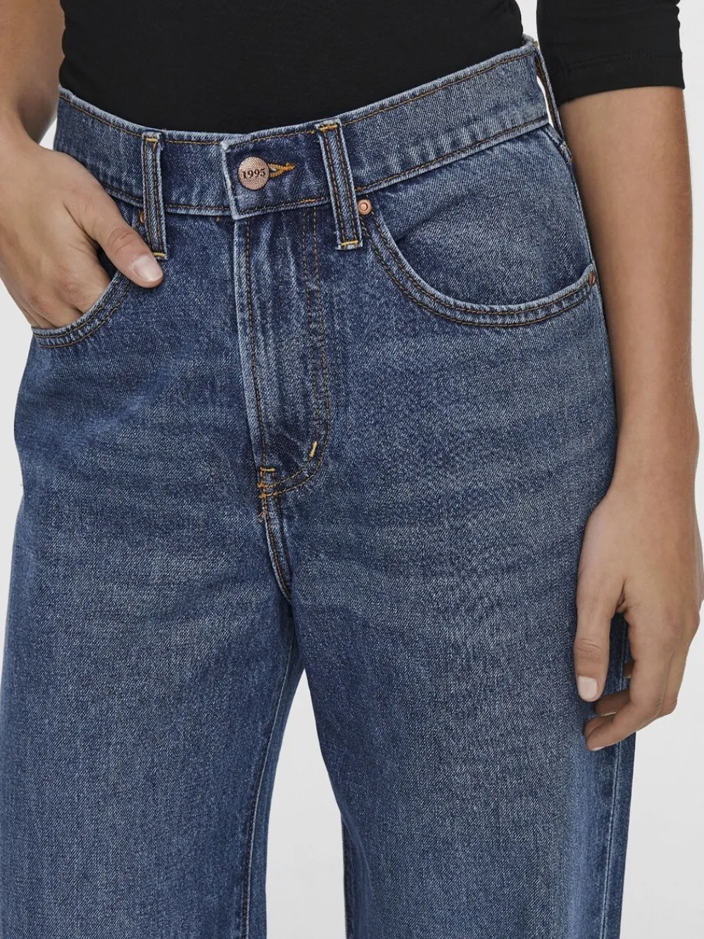 Find your new go-to item for both work and play with a pair of cool jeans in the perfect fit and colour.. Product Type: Wide fit jeans. Closing: Button fly fastening. Pockets: Back pockets, Coin pocket, Front pockets. Waist: High waist. Extra details: Belt loops. Fit: This wide-leg style are designed with comfort in mind, with plenty of room from hip to ankle. Machinewasbaar. 100% katoen.