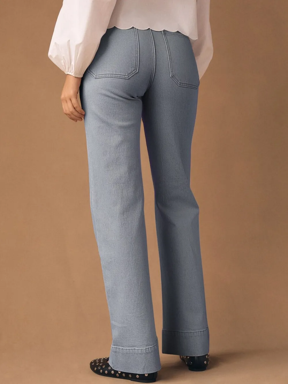 Deze stijlvolle jeans met wijde pijpen zijn gemaakt van een denimstof met een hoog katoengehalte en hebben opgestikte zakken aan de voorkant en twee zakken aan de achterkant. Ze sluiten met een knoop en ritssluiting en hebben riemlussen. Wijde pijpen met diepe zoom. Opgestikte voorzak met details. Niet-rekbaar Denim. Short voor binnenbeenlengte 27″ / 69cm. Regular voor binnenbeenlengte 29″ / 74cm. Lang genoeg voor binnenbeenlengte 31″ / 79cm. XL Tall voor binnenbeenlengte 33″ / 84cm. XXL Tall voor binnenbeenlengte 35″/ 89cm. Machinewasbaar. 99% Katoen, 1% elastaan. Artikelen met het curve-logo zijn verkrijgbaar in de maten 18 en groter. Onze tall collectie is ontworpen om te passen bij vrouwen van 5’10” en langer. Dit is verhoudingsgewijs vergroot door het lichaam, de benen en de mouwen om de perfecte pasvorm te bereiken. Verkrijgbaar in maat 8-20.