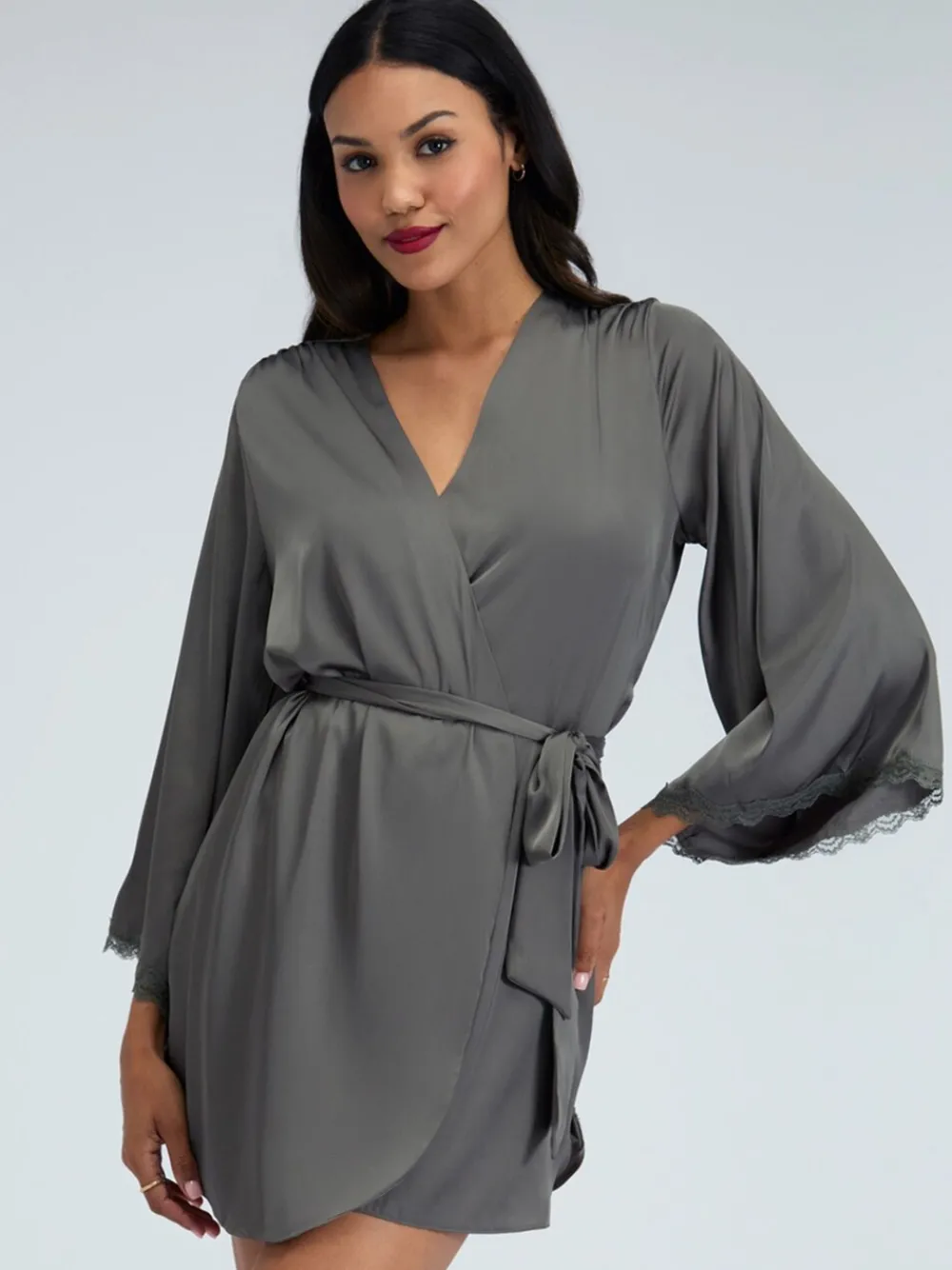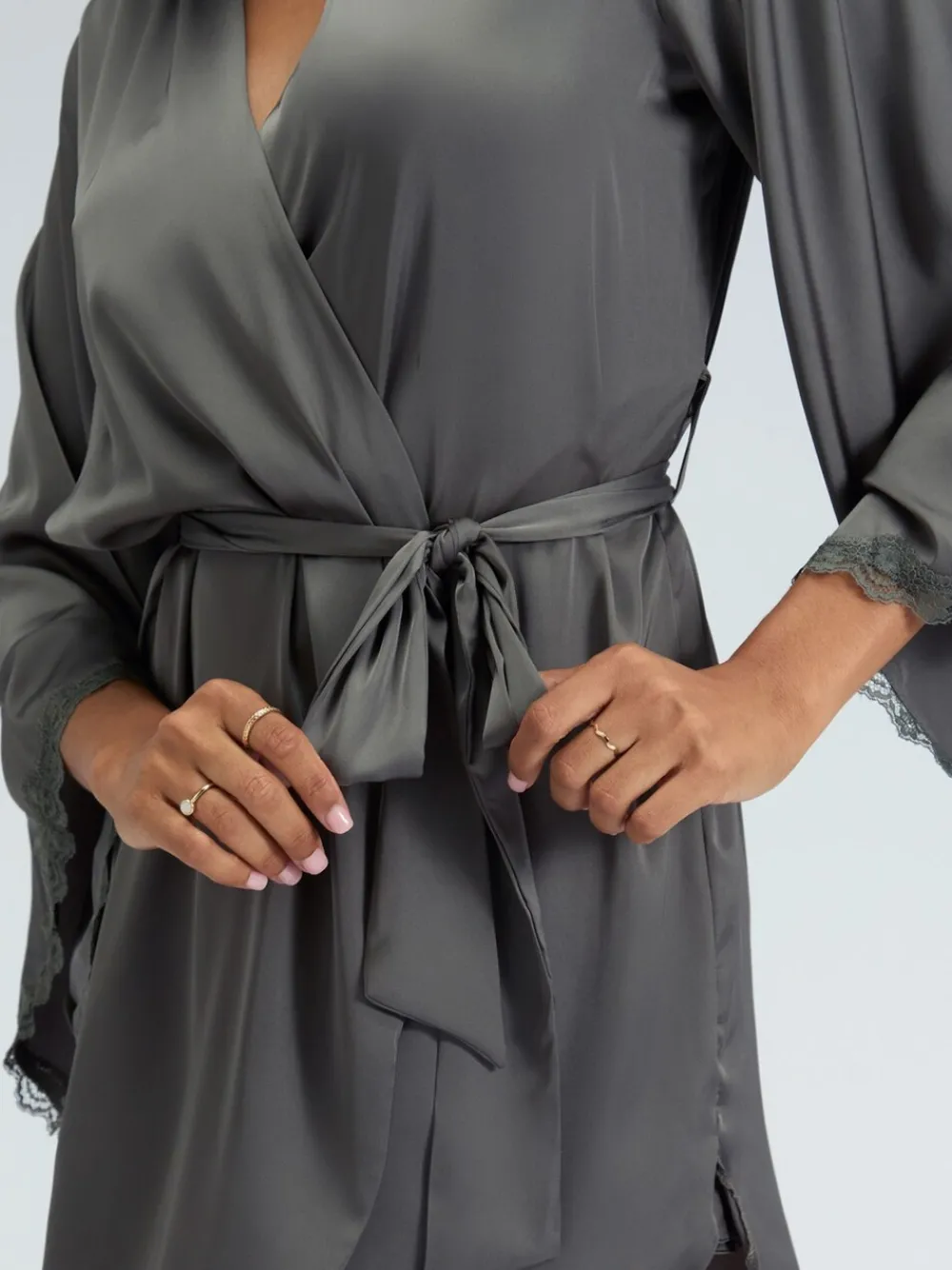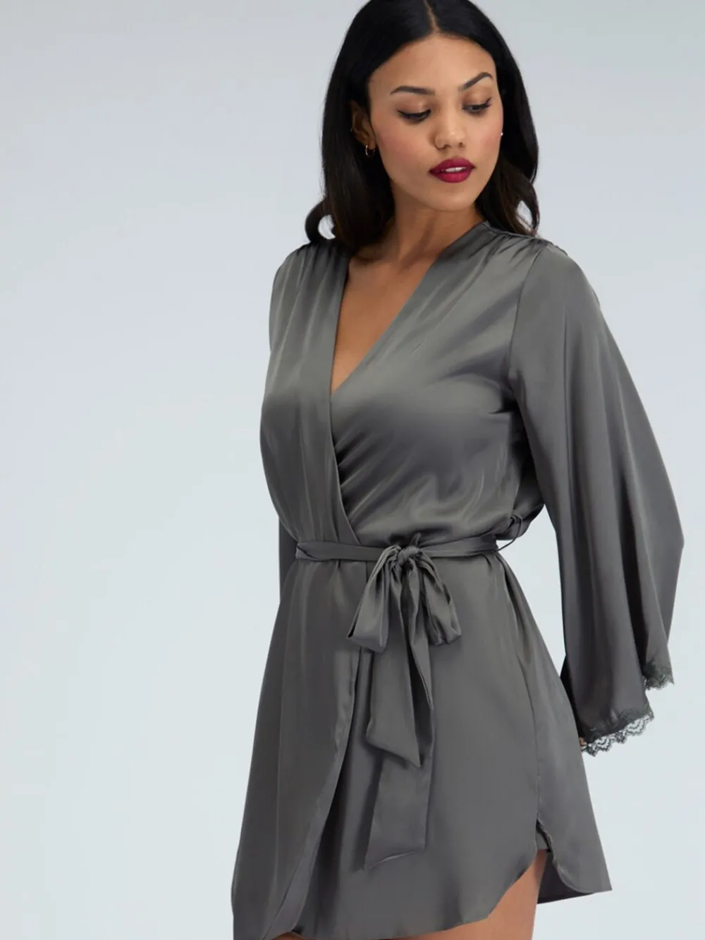 – Kaya Lace Trim Satin Robe*Boux Avenue Clearance