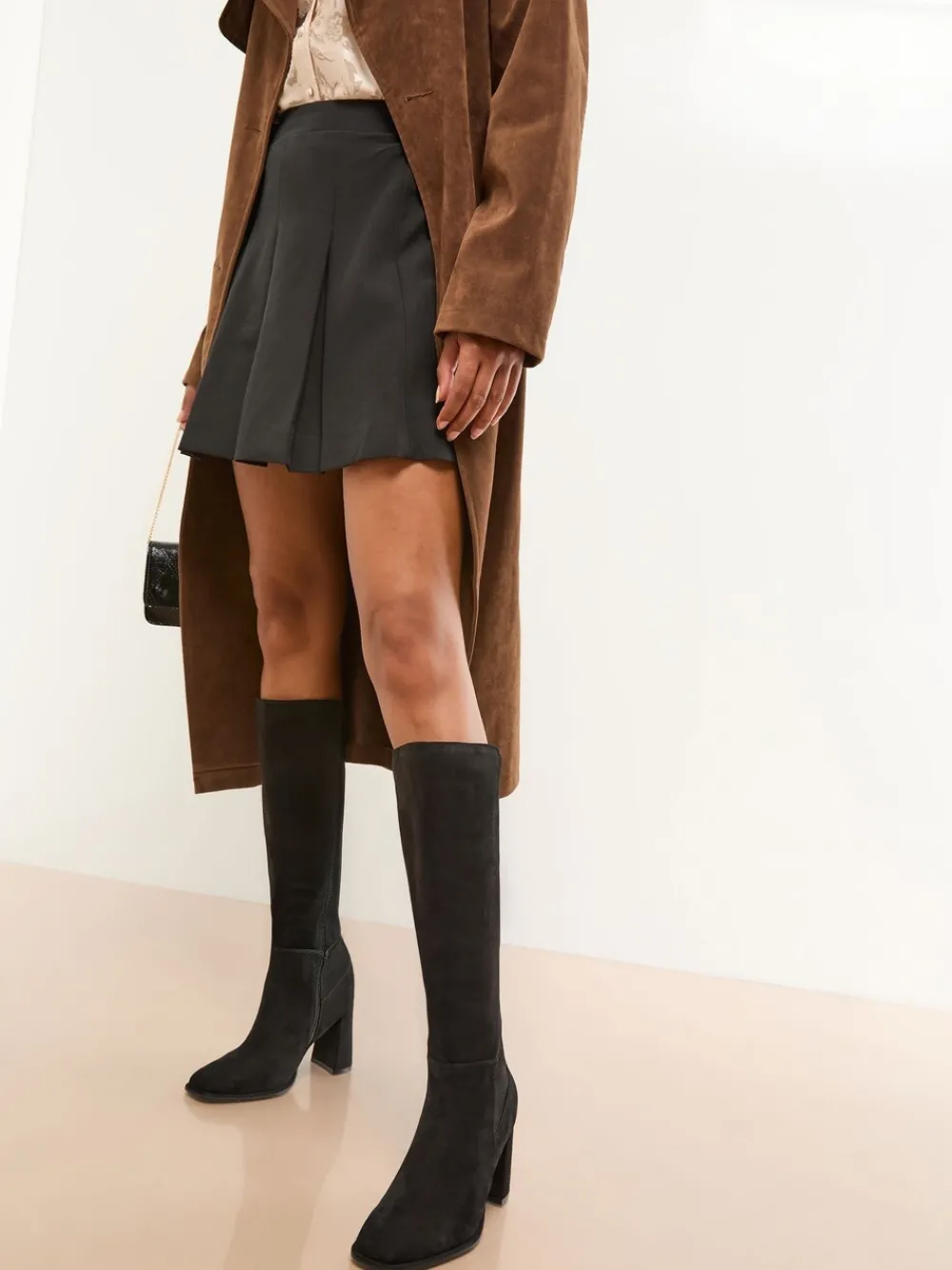 Achieve a sophisticated silhouette with these stunning knee-high boots. Crafted from soft stretch faux suede, they offer a comfortable, flattering fit that hugs the leg beautifully. The sturdy block heel provides stylish lift, making them a versatile, easy pull-on choice for elegant day-to-night wear. Stretch faux suede Knee-high length Block heel Pull-on style Hakhoogte 8,5 cm. Bovenwerk – textiel; voering en voetbed – Andere materialen, textiel, zool – Andere materialen.